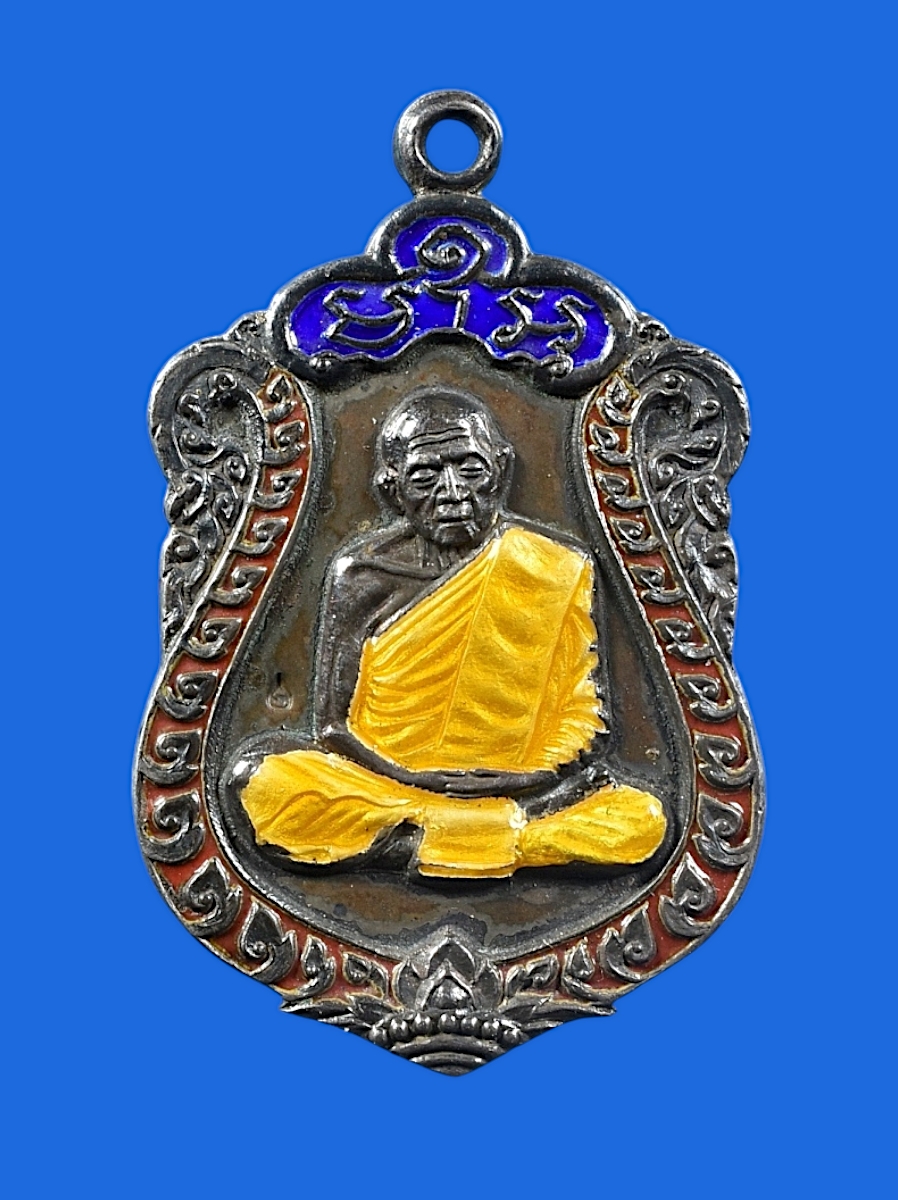 รายการที่ 989 เหรียญเสมา 8 รอบ เนื้อเงินหน้าเงิน ลงยา 3 สี