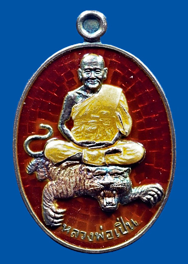 รายการที่ 4378 เหรียญรูปไข่ หลังเสือ รุ่นแรก เนื้อลงยา ปี 2519