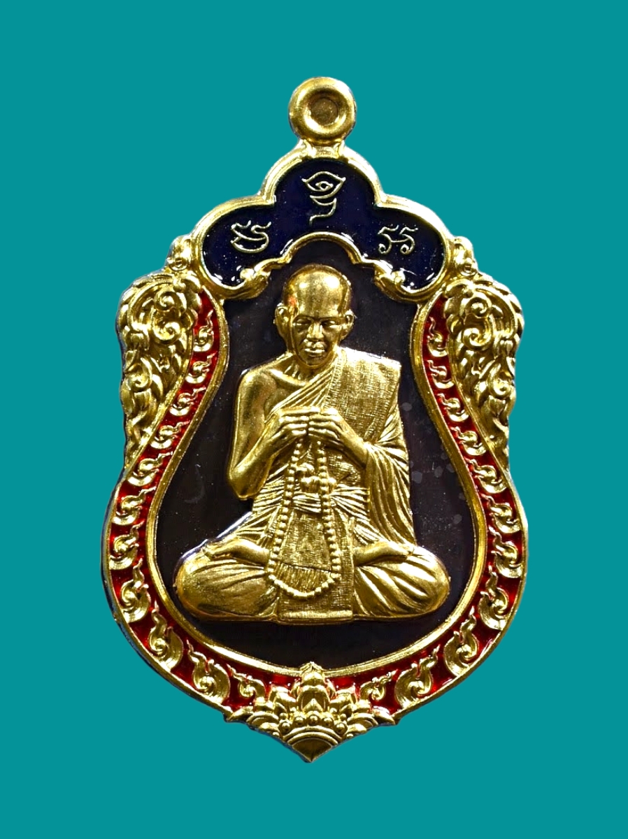 รายการที่ 1355 เหรียญเสมาเสือนอนกิน ชนวนต้นธาตุ หน้ากากทองคำ ขอบทองคำ ลงยา