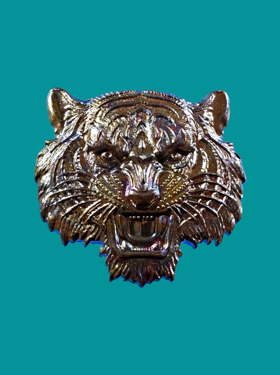 รายการที่ 1377 เหรียญหัวเสือ เสือนอนกินนวะมหาชนวนต้นธาตุ องค์พระทองคำ