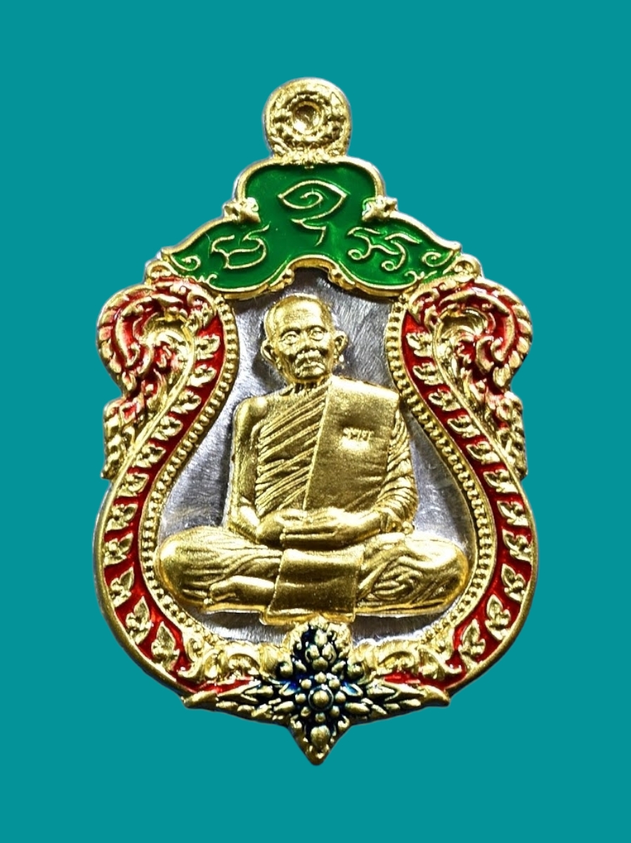 รายการที่ 1750 เหรียญเสมา ๘ รอบชนวนหน้ากากฝาบาตรขอบฝาบาตรลงยา