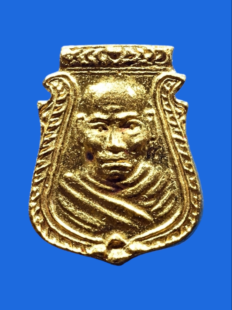 รายการที่ 2910 เหรียญ ลพ.บุญธรรม พิมพ์เสมาทองแดงกะไหล่ทอง
