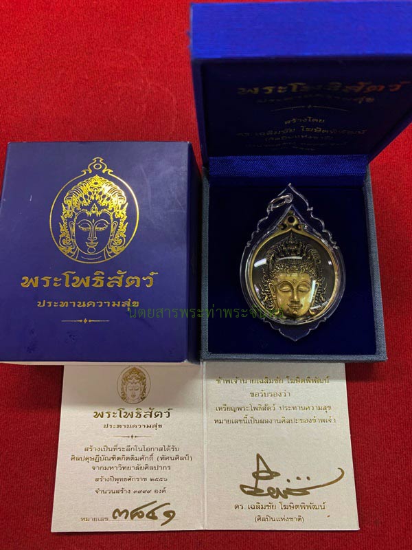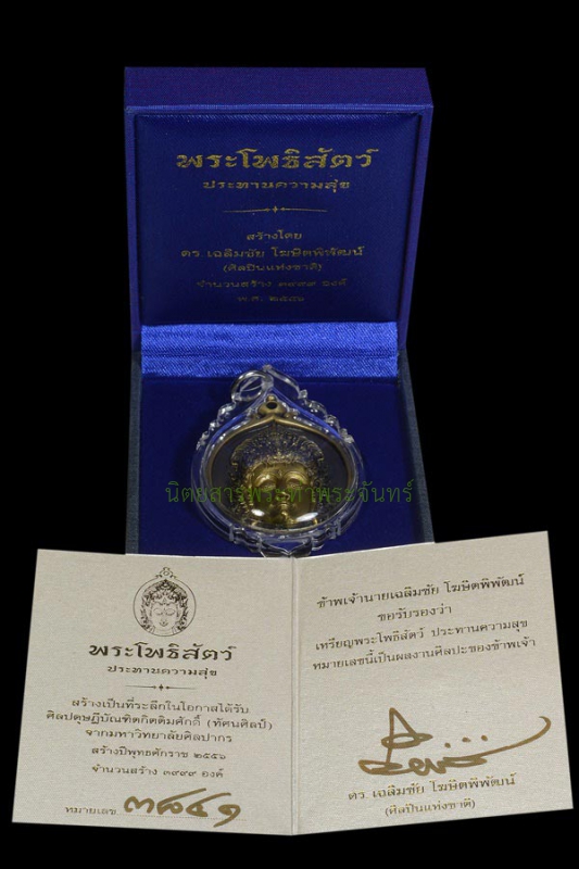 รายละเอียดพระ | เหรียญพระโพธิสัตว์ ประทานความสุข เนื้อทองเหลือง หมายเลข ๓๘๔๑ องค์นี้ลายเซ็น ฉ สวย คมชัดดีครับ มาพร้อมอุปกรณ์ครบชุด กล่องนอก กล่องใน ถุงแก้วครบครับ ผลงานการสร้างของท่านอาจารย์เฉลิมชัย โฆษิตพิพัฒน์ ศิลปินแห่งชาติ ท่านอาจารย์ได้สร้างเหรียญนี้เพื่อเป็นที่ระลึก ที่ท่านได้รับศิลปดุษดีบัณฑิตกิตติมศักดิ์ (สาขาทัศนศิลป) มหาวิทยาลัยศิลปากร จำนวนสร้างเนื้อเงินและเนื้อทองเหลืองรวมทั้งสิ้น ๓๙๙๙ องค์ แบ่งเป็น เนื้อเงิน จำนวน ๑,๕๕๕ องค์ และ เนื้อทองเหลือง ๒,๔๔๔ องค์ โดยจะรันหมายเลข ๑-๑,๕๕๕ ในส่วนของเนื้อเงิน และจะรันหมายเลข ๑,๕๕๖-๓,๙๙๙ ในส่วนของเนื้อทองเหลือง |