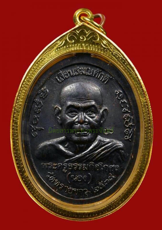 | รายละเอียดพระ | เหรียญเลื่อนสมณศักดิ์อาจารย์นอง ไข่ปลาข้าง เลี่ยมทองพร้อมบูชา เมื่อ พ.ศ.๒๕๓๗ ตรงกับวันที่ ๕ ธันวาคม ท่านอาจารย์นอง วัดทรายขาว จ.ปัตตานี ได้รับพระราชทานเลื่อนสมณศักดิ์จากพระครูสัญญาบัตรชั้นโท ที่ “พระครูธรรมกิจโกศล” เป็นพระครูสัญญาบัตรชั้นเอก ในราชทินนามเดิม คือ “พระครูธรรมกิจโกศล” พร้อมกันนี้ได้จัดสร้างเหรียญฉลองสมณศักดิ์ขึ้น เพื่อโอกาสอันเป็นมงคลนี้ จากนั้น พ.ศ.๒๕๓๘ ได้จัดสร้างเหรียญรุ่นเลื่อนสมณศักดิ์ขึ้นมาอีกวาระหนึ่ง ซึ่งปัจจุบันนี้เหรียญทั้ง ๒ ชุด ต่างได้รับความนิยมด้วยชื่อรุ่นอันเป็นมงคลนามนั่นเอง เหรียญเลื่อนสมณศักดิ์หลวงปู่ทวด-อาจารย์นอง พ.ศ.๒๕๓๘ ลักษณะด้านหน้าเหรียญเป็นหลวงปู่ทวดนั่งสมาธิเต็มองค์ ด้านหลังเป็นรูปอาจารย์นองครึ่งองค์ ตอกโค้ดทุกองค์ จำนวนสร้าง เนื้อทองคำ ๓๙ เหรียญ เนื้อเงิน ๓๓๙ เหรียญ เนื้อนวโลหะ ๓๓๙ เหรียญ เนื้อฝาบาตร ๓๐ เหรียญ และเนื้อทองแดงรมดำ ๒๕,๐๐๐ เหรียญ เนื้อทองแดงรมดำมีการแยกบล็อกตามความนิยมจากมากสุดไปหาน้อยสุด คือ “บล็อกทองคำ” สร้างประมาณ ๒๐๐ เหรียญ “บล็อกไข่ปลาล่าง” เนื่องจากมีความคล้ายกับบล็อกทองคำ “บล็อกไข่ปลาข้าง” ส่วนโค้ดที่ตอกมีทั้งด้านหน้าและด้านหลัง แรกๆ จะตอกด้านหน้า แต่หลวงพ่อท่านว่าไม่สวยจึงมาตอกที่ด้านหลังแทน ส่วนที่ตอกด้านหลังก็มีทั้งตอกซ้ายและขวา แต่โดยมากจะไม่แยกเก็บได้หมด โดยราคาเช่าหาแต่ละบล็อกต่างกันมาก สำหรับบล็อกทองคำหายากสุดๆ เกิดจากโรงงานใช้บล็อกทองคำปั๊มเหรียญทองคำ เงิน และนวะครบตามจำนวนแล้ว ก็ใช้บล็อกนี้ปั๊มเนื้อทองแดงต่อไม่เกิน ๒๐๐ เหรียญ ซึ่งถูกคละรวมกันไปหมด รู้และเล่นหาเฉพาะวงในเท่านั้น เพราะความคมชัดของเหรียญเทียบเท่าเนื้อทองคำ และมีน้อยกว่าเหรียญเงินกับนวะซะอีก วิธีดูแบบง่ายๆ ขั้นพื้นฐาน “บล็อกทองคำ” ด้านหน้าใต้แข้งหลวงพ่อจะซ้อนเหมือนปั๊มซ้ำ ส่วนด้านหลังตรงด้านศีรษะของพระอาจารย์นองจะมองเห็นเส้นเกศาได้เด่นชัด "บล็อกไข่ปลาล่าง” (บล็อกนิยม) ด้านหน้าหลวงปู่ทวดตรงเม็ดไข่ปลาให้มองลงมาตรงกับ ท. ทหาร จะมีเนื้อเกินแทรกอยู่ระหว่างไข่ปลา ๒ เม็ด ส่วนด้านหลังศีรษะพระอาจารย์นองจะไม่มีเส้นเกศา “บล็อกไข่ปลาข้าง” (บล็อกธรรมดา) ด้านหน้าหลวงปู่ทวดตรงขอบเหรียญซ้ายมือ (ขอบใน) มีเนื้อเกินออกมา (รายละเอียดของแต่ละบล็อกสามารถค้นหาได้ในเว็บไซต์เกี่ยวกับพระเครื่อง รวมทั้งการชี้ตำหนิเหรียญแท้-เก๊) เหรียญรุ่นนี้เป็นเหรียญที่ออกแบบได้สวยงามมาก มีกฤตยาคมแฝดคือเป็นเหรียญที่มีพุทธคุณของหลวงปู่ทวดคร