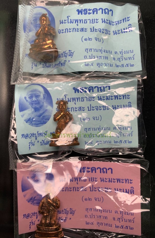 | รายละเอียดพระ | กุมารเทพ รุ่นบันดาลทรัพย์ เนื้อนวโลหะ ครบชุด3ตน หลวงปู่หงษ์ พรหมปัญโญ สุสานทุ่งมน(วัดเพชรบุรี) จ.สุรินทร์ ปี2552 ครบชุด 3ตน "คงทอง" "พ่วงเพชร" "ทองเพชร" สภาพสวย จมูกโด่ง ตอกโค้ด "นะเมติ" และหมายเลขใต้ฐาน จำนวนการสร้างแบบละ 500 ตนเท่านั้นครับ อยู่ในซองเดิมๆ เพิ่งแกะมาถ่ายรูปครับ พร้อมใบฝอยครับ พระเครื่องของหลวงปู่หงษ์ อนาคตไกล น่าสะสมบูชา ที่สำคัญราคายังไม่แพงครับ รับประกันพระแท้ ผิวเดิม VIP ตลอดชีพครับ กุมารทองหลวงปู่หงษ์ พรหมปัญโญ “บูชาไว้ให้ดี..โลกนี้ไม่มีใครเสกกุมารได้ขลังกว่านี้อีกแล้ว” กุมารทองที่หลวงปู่หงษ์สร้างไม่ใช่ก้อนดินหรือก้อนทองเหลือง ที่หลอกลวงเอาเงินชาวบ้านมาเพื่อตัวท่าน แต่หลวงปู่ อธิฐานจิตสร้างสิ่งมงคลสิ่งศักดิ์สิทธิ์ให้แก่ผู้คนได้มีไว้บูชา กุมารทองเมื่อเลี้ยงบูชาแล้วจะบันดาลสิ่งต่างๆให้ผู้เลี้ยงบูชาได้สมปรารถนาและมีคุณด้านเมตตา-มหานิยม ค้าขายร่ำรวย ป้องกันภัยจากสิ่งไม่ดีต่างๆ และยังบันดาลโชคลาภให้แก่ผู้ เลี้ยงบูชากุมารทอง ได้อย่างไม่ขาดสาย จนเป็นที่พอใจสำหรับผู้เลี้ยงบูชากุมารทอง สายเทพ ประสบการณ์ดีเด่นชัด มีมาหลายรุ่น จนเป็นที่นิยมชมชอบ ทั้งชาวไทยและต่างชาติ ### กุมารเทพไม่มีโทษมีแต่คุณ เอาไว้เสริมมงคลตัวผู้บูชา ครอบครัว ### รับเช่า-ให้เช่า หลวงปู่หงษ์ พรหมปัญโญ #รับเช่า #ให้เช่า #หลวงปู่หงษ์ |