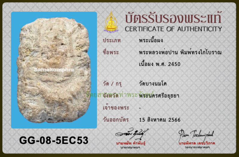 | ชื่อพระ | พระหลวงพ่อปาน พิมพ์ทรงไก่โบราณ เนื้อผง พ.ศ.2450 วัดบางนมโค จ.พระนครศรีอยุธยา |