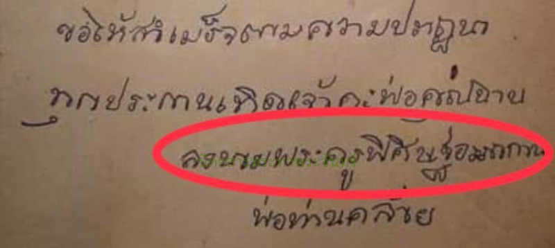 รายละเอียดพระ รูปถ่ายพ่อท่านคล้าย พิเศษมาพร้อมลายมือพ่อท่านคล้ายหนึ่งเดียวหายากมากๆ ขนาด 12*10 นิ้ว ไม่รวมกรอบ เป็นภาพถ่ายหลังโต๊ะหมู่ภาพนี้สภาพสมบูรณ์สุดๆ พระครูพิศิษฐ์อรรถการ หรือที่รู้จักกันทั่วไปว่า "พ่อท่านคล้าย วาจาสิทธิ์" นามตามสมณศักดิ์ท่านคือ พระครูพิศิษฐ์อรรถการ เป็นอดีตเจ้าอาวาสวัดสวนขัน จังหวัดนครศรีธรรมราช พ่อท่านคล้าย มีลักษณะนิสัย เป็นคนมีมานะอดทน ขยันหมั่นเพียร อยู่ในโอวาทคำสั่งสอนของบิดามารดาและครูอาจารย์อย่างเคร่งครัด สุภาพ เรียบร้อย ว่านอนสอนง่าย นิสัยอ่อนโยนละมุนละไม จึงเป็นที่รักของบิดามารดา ครูอาจารย์และญาติมิตรเป็นอันมาก เมื่ออายุ 15 ปี หลวงพ่อคล้าย ประสบอุบัติเหตุในการถางป่าทำไร่ ขาของพ่อท่านคล้ายนั้นเสียข้างหนึ่ง คือ ขาด้านซ้ายขาดตั้งแต่ตาตุ่มลงไป (เสียตั้งแต่สมัยเด็กๆ โดนต้นไม้ทับที่บ้านญาติของท่านที่ จ.กระบี่ ขาเป็นหนองเลยต้องตัดทิ้ง โดยท่านใช้มีดปาดตาลตัดเอง) ท่านเลยต้องใส่กระบอกเลยต้องตัดทิ้ง โดยท่านใช้มีดปาดตาลตัดเอง) ท่านเลยต้องใส่กระบอกไม้ไผ่แทน พ่อท่านคล้าย ได้บรรพชาเป็นสามเณร เมื่อวันที่ 30 มิถุนายน พ.ศ.2438 (อายุ 19 ปี) บรรพชาที่วัดจันดี ต.หลักช้าง บรรพชาโดยอาจารย์ พระอธิการจันเจ้าอาวาสวัดจันดี (ทุ่งปอน) และพ่อท่านสามารถท่อง พระปาฏิโมกข์จนได้แม่นยำ ครั้นอายุครบ 20 ปีบริบูรณ์ ในปี พ.ศ.2439 ได้เข้าพิธีอุปสมบท ณ อุทกุกเขปสีมา (ศาลาน้ำ) วัดวังม่วง โดยมีพระอาจารย์กราย คังคสุ วัณโณ เจ้าอาวาสวัดหาดสูง เป็นพระอุปัชฌาย์, พระอาจารย์สังข์ สิริรตโน เจ้าอาวาสวัดไม้เรียง เป็นพระกรรมวาจาจารย์ และพระอาจารย์ทอง ปทุมสุวัณโณ เจ้าอาวาสวัดวังม่วงเป็นพระอนุสาวนาจารย์ และมีพระอาจารย์ล้อม ถิรโชโต เป็นผู้ให้สรณคมน์และศีล ได้รับฉายาว่า จันทสุวัณโณ แล้วได้ไปจำพรรษา อยู่ที่วัดทุ่งปอน หรือวัดจันดี ต่อมาปี พ.ศ.2441 พ่อท่านคล้าย ได้เข้าศึกษาพระปริยัติธรรม แผนกบาลี เรียนมูลกัจจายนะ ในสำนักพระครูกาแก้ว (ศรี) ณ วัดหน้าพระธาตุ อำเภอเมือง จังหวัดนครศรีธรรมราช จบหลักสูตรมูล พอแปลบาลีได้ ศึกษาอยู่เป็นเวลา 2 พรรษา ปี พ.ศ.2443 ต่อมาได้ศึกษาทางวิปัสสนากัมมัฎฐานที่สำนักวัดสามพัน อำเภอพระแสง จังหวัดสุราษฎร์ธานี โดยมีอาจารย์หนูเจ้าอาวาสเป็นผู้สอน ปี พ.ศ.2445 พ่อท่านคล้าย ได้กลับมาอยู่จำพรรษาวัดหาดสูง ใกล้ตลาดทานพอ ในสำนักพระครูกราย ซึ่งเป็นพระอุปัชฌาย์ของพ่อท่าน เพื่อศึกษาวิปัสสนาและไสยศาสตร์ โดยเหตุที่พระครูกราย เป็นอาจารย์ฝ่ายวิปัสสนาและทรงวิชาคุณทางไสยศาสตร์ในสมัยนั้น ปี พ.ศ.2447 พ่อท่านคล้าย ได้