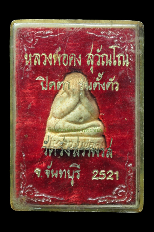 | ชื่อพระ | พระปิดตารุ่นตั้งตัวพิมพ์ตุ๊กตาลอยองค์ หลวงพ่อคง วัดวังสรรพรส จังหวัดจันทบุรี ปี2521 เนื้อผงพุทธคุณฝังตะกรุดใต้ฐาน |