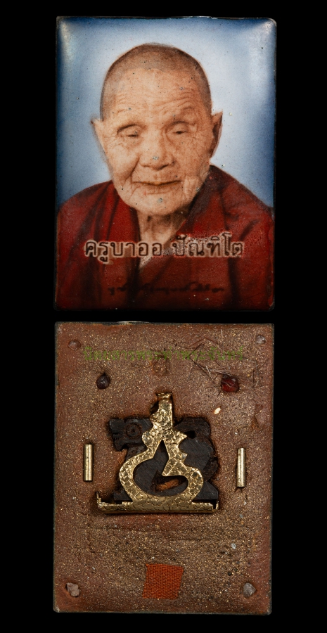 รายละเอียดพระ ล๊อกเก็กครูบาออรุ่นแรก ยิ้มรับทรัพย์ปี56สร้าง500องค์"ล็อกเก็ตยิ้มรับทรัพย์ รุ่นแรก ฉากสีเทา" ครูบาออ สำนักสงฆ์พระธาตุจอมแวะ ฝังเกศา, จีวร, ตะกรุดเสริมดวง 1 ดอก, ตะกรุดมหาปราบ 1 ดอก  ฝังสิงห์ไม้กาหลงดำ  สร้างจำนวน 500 องค์ ขนาดความสูง 4 ซ.ม.  กว้าง 3 ซ.ม.ฉลองอายุ 95 ปี ลายมือครูบาออ หรือเรียกว่าล็อกเก็ตลายเซ็นก็ได้ ล็อกเก็ตมหาเศรษฐีก็ได้ เพราะเป็นประกาศิตว่า ใครมีล็อกเก็ตรุ่นนี้ รวยหมด รวยทุกคน  ถือว่าเป็นตัวแทนของท่านครูบาออ เป็นตัวแทนครูบาอาจารย์ของท่านและสายวิชาหอคำหลวง ด้านหน้ารูปครูบาออ ห่มคลุม ริ้วรอยเหี่ยวย่น ชัดเจน ใบหน้ายิ้มพิมพ์ใจ มีความสุขที่สร้างทางเสร็จ  มีความสุขที่ลูกหลานมีสุข ลูกศิษย์มีชีวิตสดใส เจริญก้าวหน้า  ด้านหลัง ฝังของวิเศษเฉพาะตัวหลายชิ้น