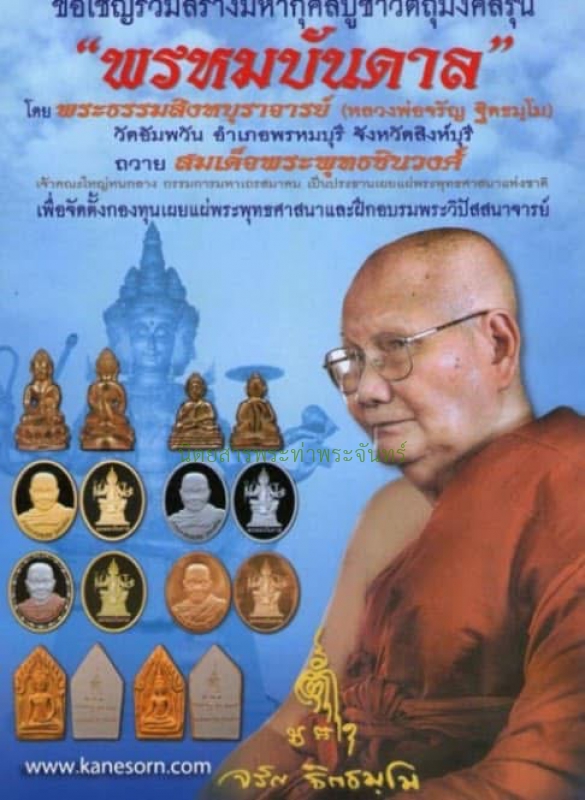 | รายละเอียดพระ | พระกริ่งหลวงพ่อจรัญ วัดอัมพวัน จ.สิงห์บุรี รุ่น " พรหมบันดาล " เนื้อทองคำเลี่ยมทองยกซุ้มลงยาอย่างดีพร้อมใช้ สร้าง 199 องค์หายากน่าบูชาสะสม ในปีพ.ศ.2556 หลวงพ่อจรัญท่านได้บอกบุญให้ศิษยานุศิษย์และผู้ศรัทธาร่วมกันสร้างมหากุศลครั้งยิ่งใหญ่ถวาย ‘สมเด็จพระพุทธชินวงศ์’ เจ้าคณะใหญ่หนกลาง และกรรมการมหาเถรสมาคม ในฐานะประธานเผยแผ่พระพุทธศาสนาแห่งชาติ ประธานจัดสร้างกองทุนเผยแผ่พระพุทธศาสนา และประธานการฝึกอบรมพระวิปัสสนาจารย์และการนี้หลวงพ่อจรัญได้เมตตาอนุญาตให้ศิษย์นำโดยเซียนพระรุ่นใหญ่ ‘สมภพ ไทยธีรเสถียร’ หรือ ‘อั๊ง เมืองชล’ อุปนายกสมาคมผู้นิยมพระเครื่องพระบูชาไทย ประธานชมรมพระเครื่องมณเฑียรพลาซ่า เป็นประธานอุปถัมภ์ให้วัดในการจัดสร้าง ‘วัตถุมงคลรุ่นพรหมบันดาล’ ขึ้นในวาระพิเศษ สาเหตุของการจัดสร้างวัตถุมงคลรุ่นนี้ว่า หลวงพ่อจรัญ ประสงค์จะหาทุนจัดตั้งเป็นกองทุนอุปถัมภ์การเผยแผ่พระพุทธศาสนา ซึ่งมีสมเด็จพระพุทธชินวงศ์ เจ้าคณะใหญ่หนกลาง กรรมการมหาเถรสมาคมเป็นประธาน และมีวัตถุประสงค์เพื่อนำรายได้อุปถัมภ์ฝึกอบรมพระวิปัสสนาจารย์ อุปถัมภ์นิสิตนักศึกษา หลักสูตรสาขาวิปัสสนาทุกระดับ และอุปถัมภ์การจัดทำปทานุกรมพระไตรปิฎกเชิงวิจัยฉบับเฉลิมพระเกียรติรัชกาลที่ 9 พระธรรมสิงหบุราจารย์ หรือ หลวงพ่อจรัญ ฐิตธมโม เกิดเมื่อวันที่ 15 สิงหาคม พุทธศักราช 2471 ในรัชสมัยพระบาทสมเด็จพระปกเกล้าเจ้าอยู่หัว รัชกาลที่ 7 ณ ตำบลม่วงหมู่ สิงห์บุรี ครั้นถึงคราวศึกษาเล่าเรียน หลวงพ่อจรัญในขณะนั้น ได้ให้ความสนใจทั้งทางโลกและทางธรรม มีความเชี่ยวชาญชำนาญเป็นพิเศษในทั้งสองทาง แต่แสวงหาความรู้และศึกษาจริงจังในเรื่องพระธรรมวินัย วิปัสสนากรรมฐานกระทั่งเมื่อวันที่ 15 กรกฎาคม พุทธศักราช 2491 หลวงพ่อจรัญได้อุปสมบท ณ วัดพรหมบุรี สิงห์บุรี โดยมีท่านเจ้าคุณพรหมนคราจารย์ แห่งวัดแจ้งพรหมนครเป็นพระอุปัชฌาย์ พระครูถาวรวิริยคุณ วัดพุทธาราม เป็นกรรมวาจาจารย์ และได้รับฉายาว่า "ฐิตธมฺโม" ต่อมาหลวงพ่อจรัญได้ธุดงค์ไปตามที่ต่างๆ เพื่อแสวงหาความรู้ในด้านสมถกรรมฐานวิปัสสนากรรมฐาน ได้ฝากตัวเป็นศิษย์ศึกษาวิชากับพระอาจารย์หลายท่านด้วยกัน พุทธศักราช 2500 หลวงพ่อจรัญได้รักษาการตำแหน่งเจ้าอาวาส วัดอัมพวัน จ.สิงห์บุรี และได้ดำเนินการพัฒนาปรับปรุงฟื้นฟูกิจการทั้งภายในและภายนอกวัด จนเจริญรุ่งเรืองเรื่อยมาตามลำดับ ในเวลาต่อมาได้รับพระราชทานสมณศักดิ์เป็นพระครูสัญญาบัตร "พระครูภาวนาวิสุทธิ์" เมื่อครั้งวันพระราชพิธีเฉล