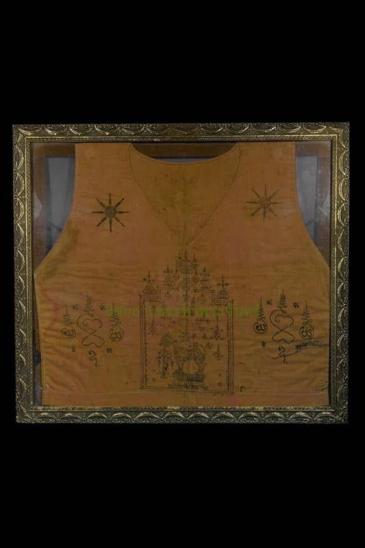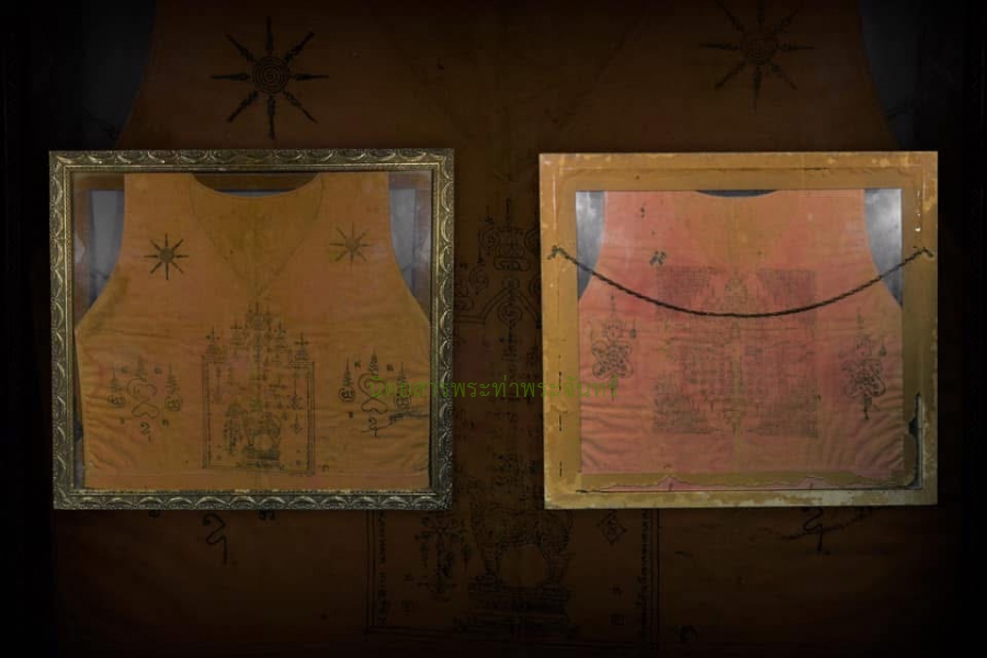 | รายละเอียดพระ | เสื้อยันต์ / ผ้ายันต์หลวงปู่ทอง วัดราชโยธา (ลาดบัวขาว) กรุงเทพฯ หลวงปู่ทอง อายะนะ เกิดเมื่อปี พ.ศ. 2363 ตรงกับปลายสมัยรัชกาลที่ 2 เป็นบุตรของนายฮวด แซ่ลิ้ม ชาวจีนฮกเกี้ยน มารดาเป็นชาวมอญ ต่อมาท่านได้อุปสมบทเมื่อปี พ.ศ. 2384 ได้อุปสมบท ณ วัดเงินบางพรม ตลิ่งชัน โดยมีท่านเจ้าคุณวินัยกิจจารีเถระ (ภู่) อดีตเจ้าอาวาสองค์ที่ 2 ของ วัดเงินบางพรม เป็นพระอุปัชฌาย์ ได้รับฉายาตามภาษามคธว่า อายะนะ หลังจากอุปสมบทมา ได้พำนักจำพรรษา ณ วัดแห่งนั้นเพื่อศึกษาพระธรรมวินัย และคอยอุปัฏฐากพระอุปัชฌาย์ของท่านภายหลังได้ธุดงค์วัตรเพื่อแสวงหาโมกขธรรม เมื่อพระราชโยธาก่อสร้างวัดราชโยธาเสร็จเรียบร้อยแล้ว ได้นิมนต์ท่านให้มาเป็นเจ้าอาวาส ท่านจึงเป็นเจ้าอาวาสองค์แรกของ วัดราชโยธาท่านเป็นยอดพระเกจิที่เก่งมากๆในสมัยก่อน โดยท่านเป็นศิษย์รุ่นน้องของสมเด็จพระพุฒาจารย์(โต พรหมรังสี) ซึ่งมีอาจารย์ร่วมสำนักเดียวกันคือ หลวงปู่แสง วัดมณีชลขันธ์ จ.ลพบุรี (ศิษย์ร่วมสำนักเดียวกันอีกท่าน คือ หลวงปู่แก้ว วัดเครือวัลย์) นอกจากนี้ สหายของหลวงปู่ทองที่ไปมาหาสู่กันเป็นประจำ เพื่อแลกเปลี่ยนวิชาความรู้และวิชาอาคมต่างๆก็มี หลวงพ่อเงิน วัดบางคลาน จ.พิจิตร หลวงปู่ศุข วัดมะขามเฒ่า จ.ชัยนาท หลวงปู่พริ้ง วัดบางปะกอก หลวงปู่ภู วัดอินทร์ หลวงปู่เอี่ยม วัดหนัง หลวงปู่แช่ม วัดฉลอง จ.ภูเก็ต ท่านเจ้ามา วัดสามปลื้ม หลวงปู่ปั้น วัดเงิน ตลิ่งชัน ส่วนลูกศิษย์ของหลวงปู่ทองก็มี หลวงปู่เผือก วัดกิ่งแก้ว ซึ่งเป็นศิษย์ก้นกุฏิของท่านเพราะท่านเป็นพระอุปัชฌาย์บวชให้เอง และตอนที่หลวงปู่เผือกสร้างพระ หลวงปู่ทองก็ยังมอบผงศักดิ์สิทธิ์ต่างๆ ซึ่งท่านแบ่งมาจากสมเด็จพุฒาจารย์(โต พรหมรังสี) ศิษย์พี่ของท่าน ให้หลวงปู่เผือกไปสร้างพระด้วย นอกจากนี้ ยังมีพระเกจิอาจารย์อีกหลายท่านที่มาขอเรียนวิชาเพิ่มเติมจากหลวงปู่ทอง เช่น หลวงปู่เหลือ วัดสาวชะโงก ฉะเชิงเทรา หลวงพ่อจง วัดหน้าต่างนอก อยุธยา หลวงปู่คง วัดบางกะพ้อม สมุทรสงคราม หลวงปู่จาด วัดบางกะเบา ปราจีนบุรี หลวงพ่อสด วัดปากน้ำ ภาษีเจริญ หลวงพ่อคล้าย วัดสวนขันธ์ นครศรีธรรมราช หลวงพ่อทองอยู่ วัดใหม่หนองพระองค์ สมุทรสาคร หลวงพ่อแช่ม วัดตาก้อง ภูเก็ต หลวงพ่ออี๋ วัดสัตหีบ ชลบุรี และศิษย์ที่เป็นฆราวาส เช่น อาจารย์แก้วคำวิบูลย์ (บวชเป็นพระแล้วต่อมาศึกเป็นฆราวาส) อาจารย์แถว กรเดช อาจารย์เจ็ก สำนัก สามแยกไฟฉาย อาจารย์เที่ยง น่วมมานา สำนักบ้านมีดี ในสมัยก่อนหลวงปู่ทอง ท่านเป็นพระที่มีอาวุโสสูง และทรงไว้ซึ่