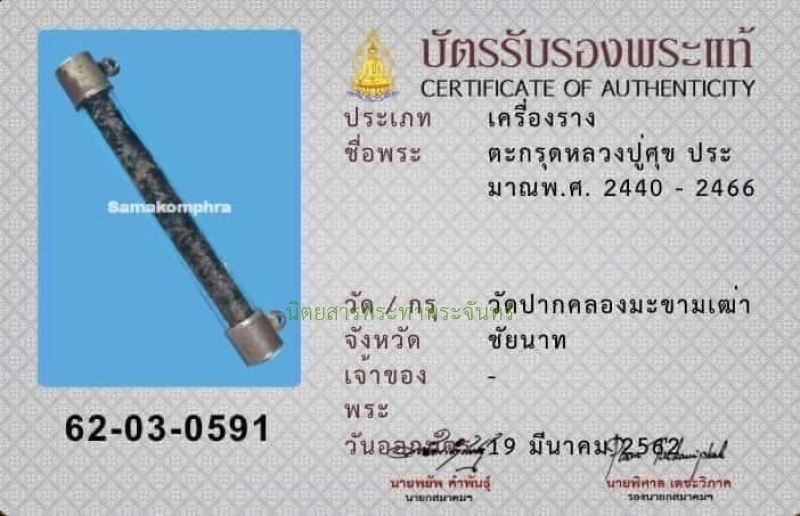| ชื่อพระ | ตะกรุดหลวงปู่ศุข เนื้อเงิน |