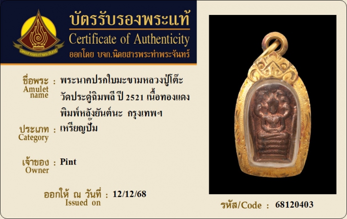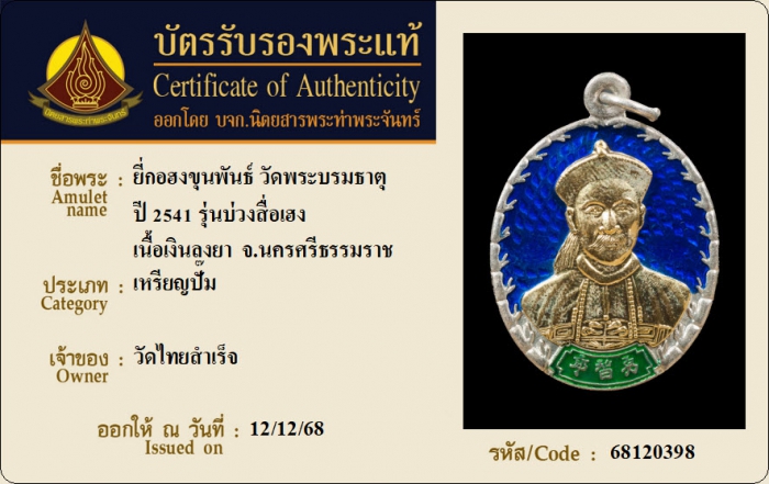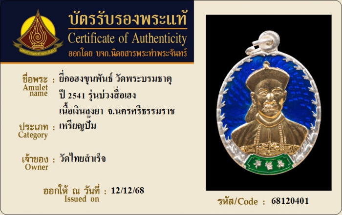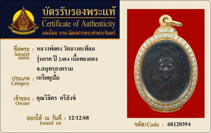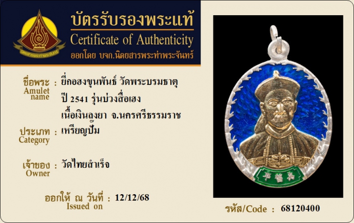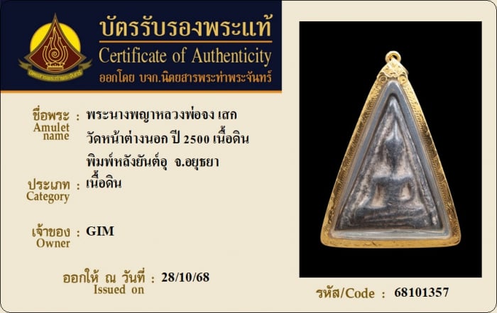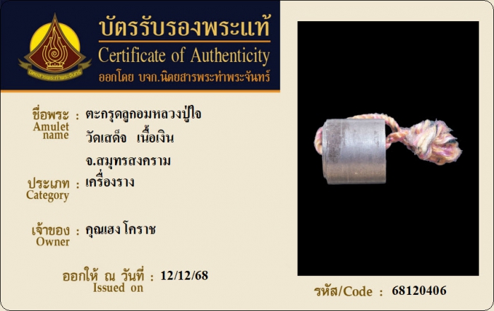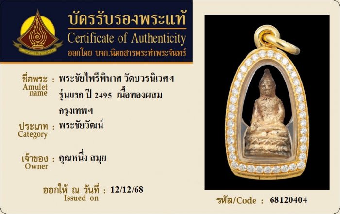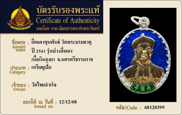 ค้นหาใบการันตีพระแท้