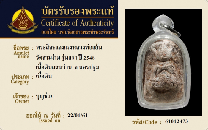ค้นหาใบการันตีพระแท้