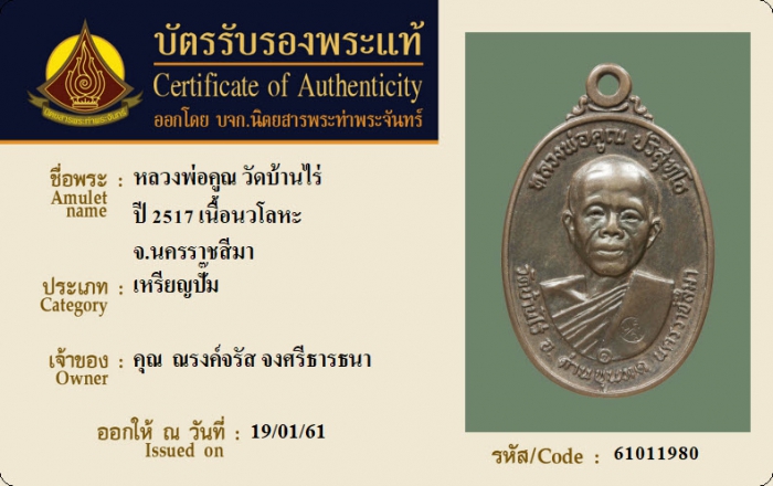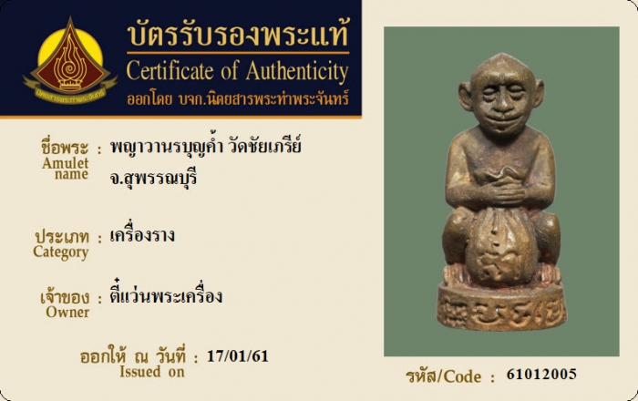 ค้นหาใบการันตีพระแท้