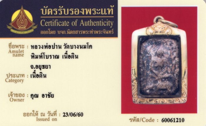 ค้นหาใบการันตีพระแท้