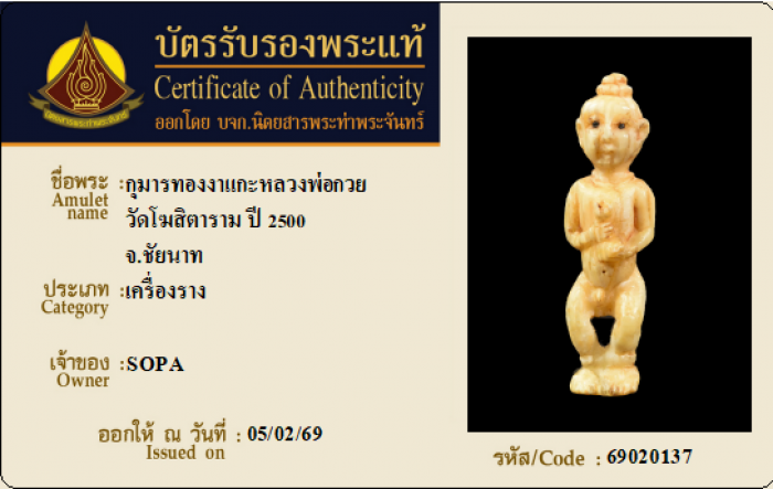 ค้นหาใบการันตีพระแท้