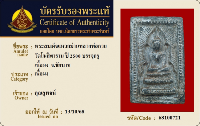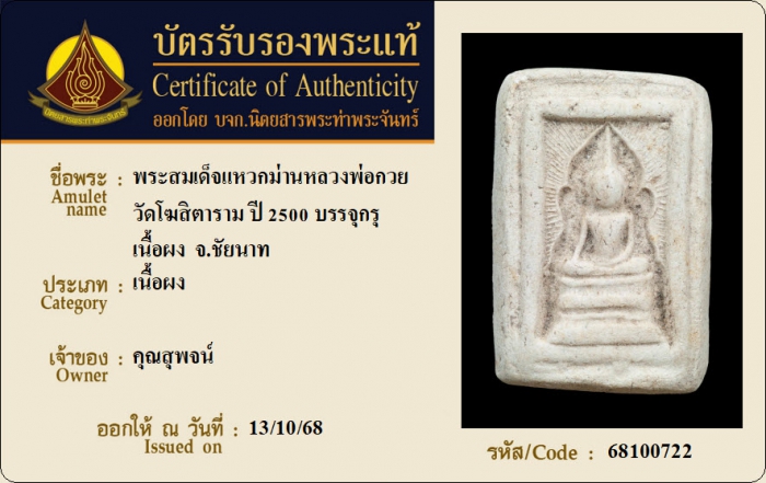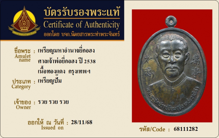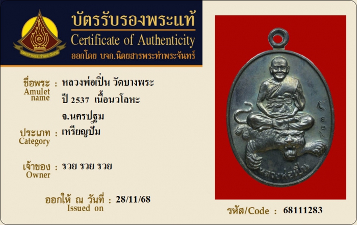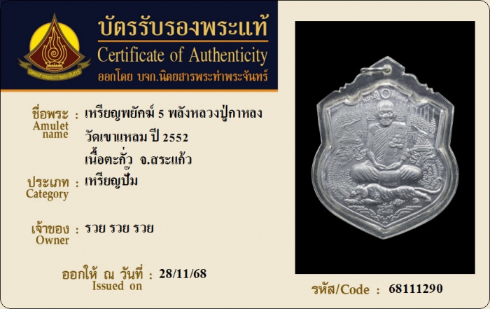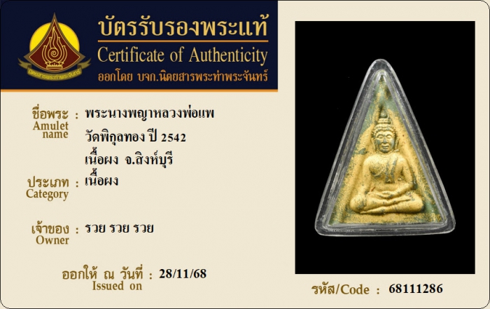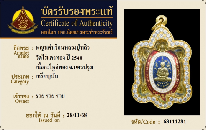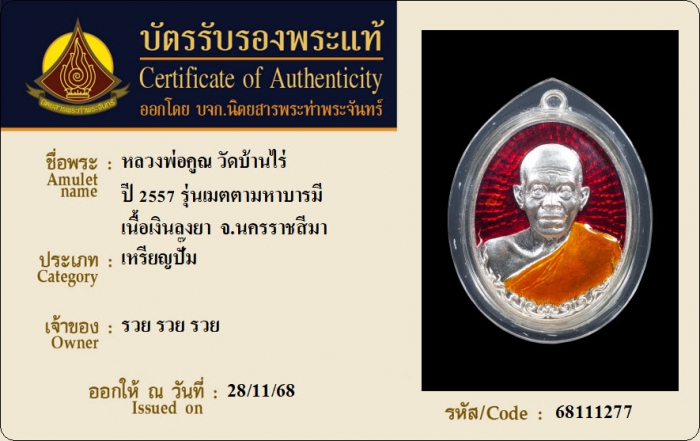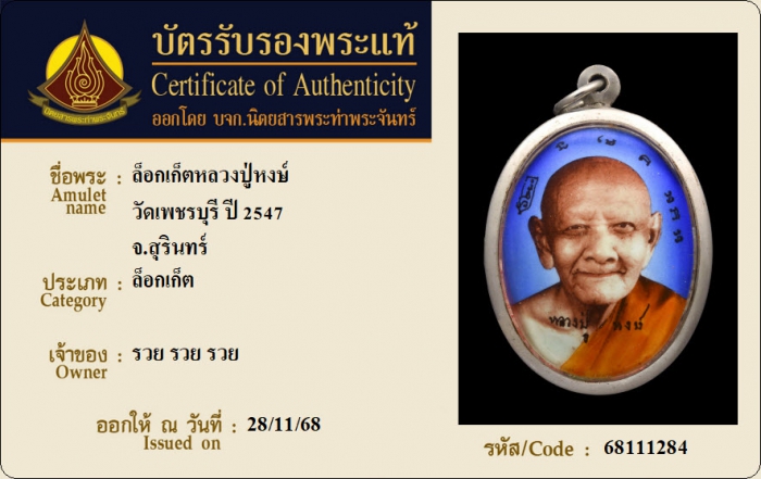 ค้นหาใบการันตีพระแท้