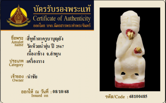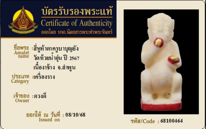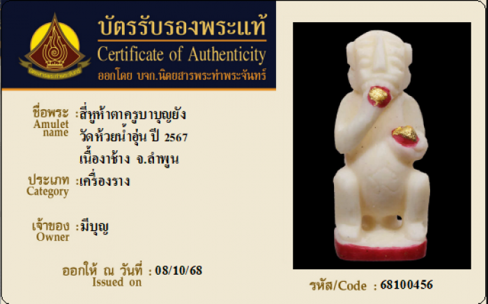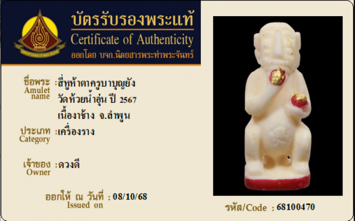 ค้นหาใบการันตีพระแท้