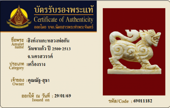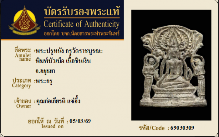ค้นหาใบการันตีพระแท้