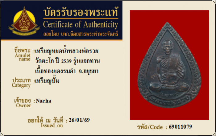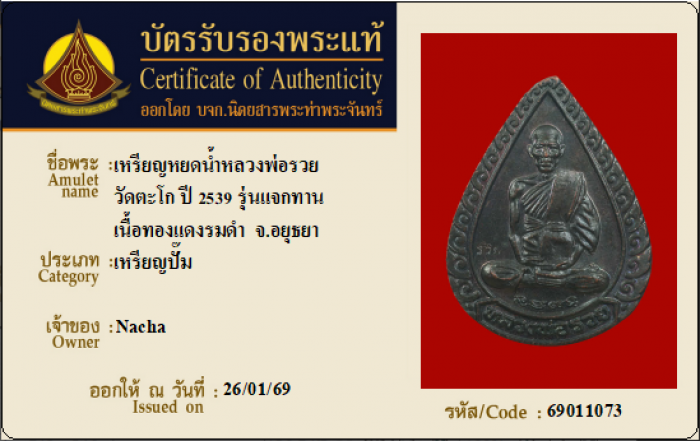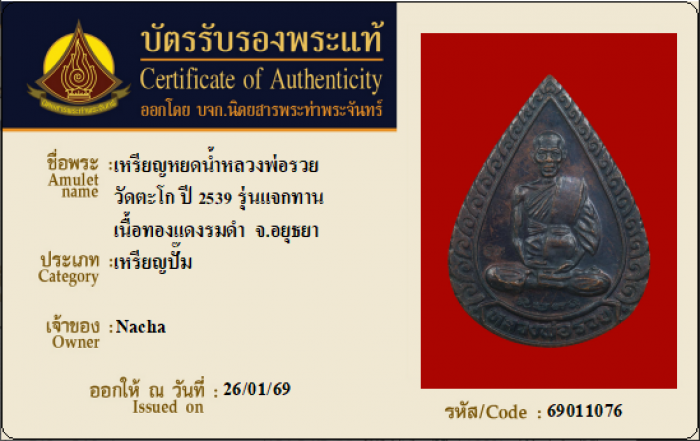 ค้นหาใบการันตีพระแท้