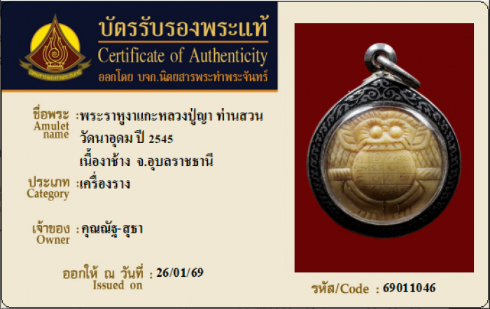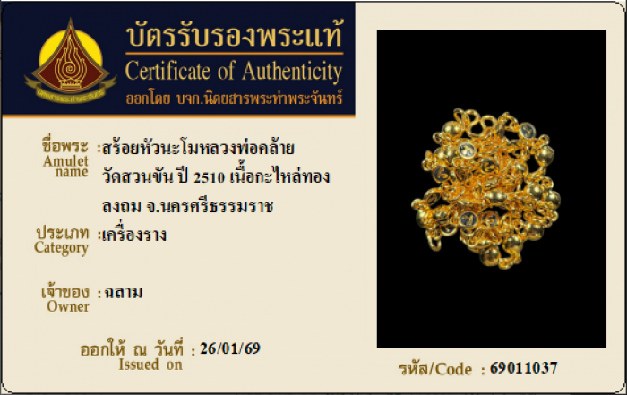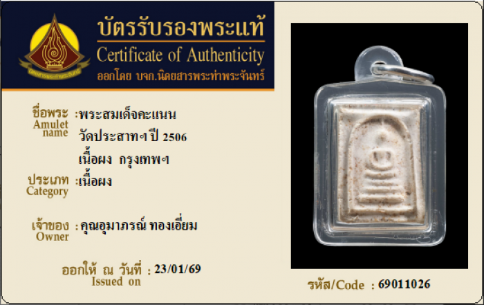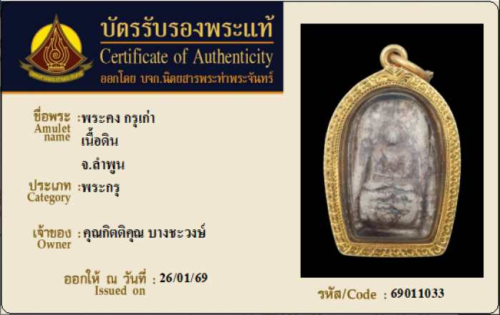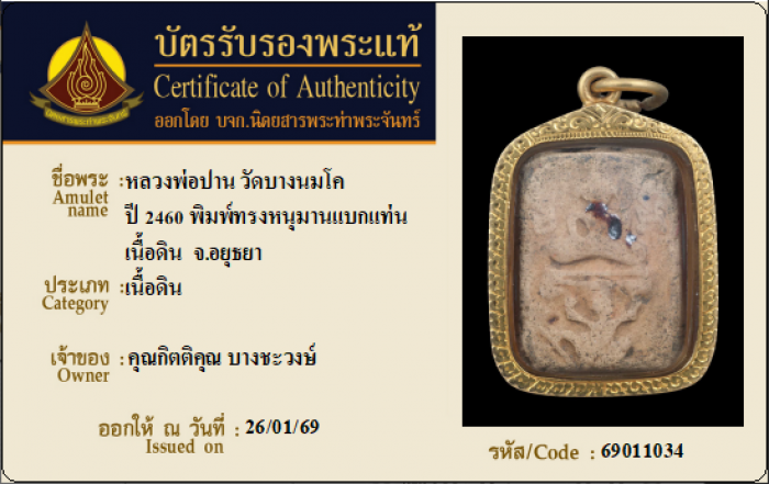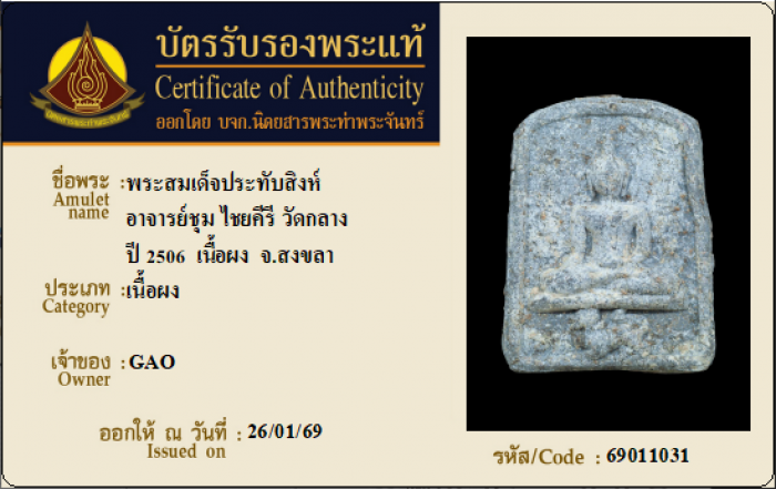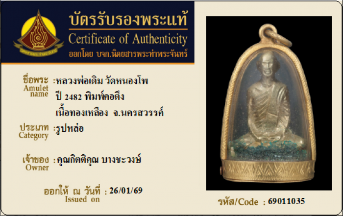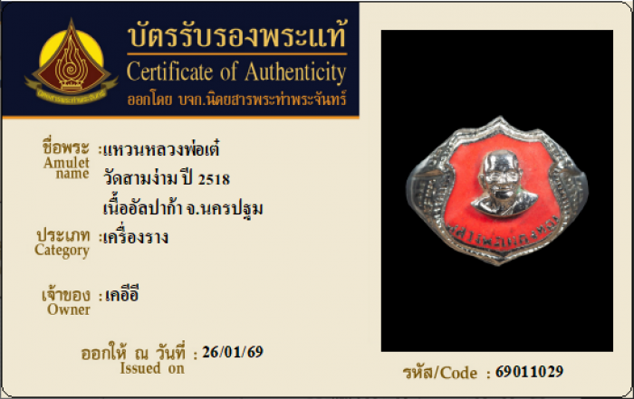 ค้นหาใบการันตีพระแท้