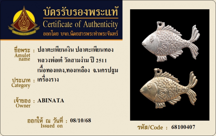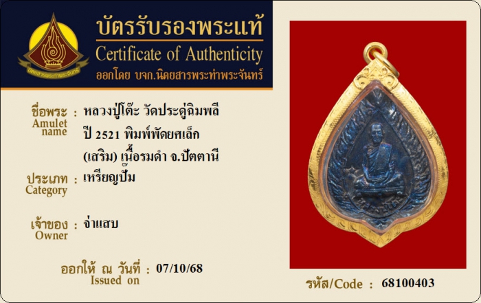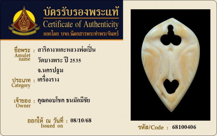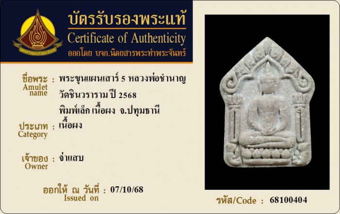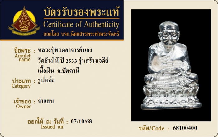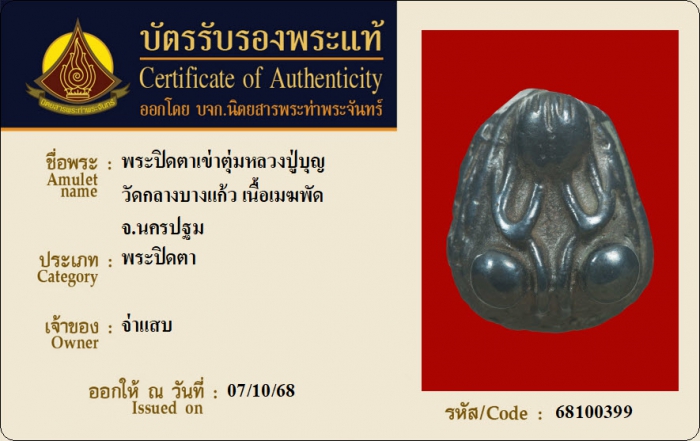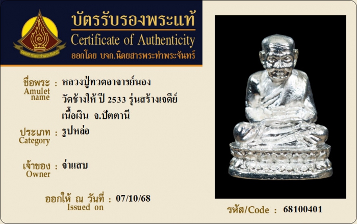 ค้นหาใบการันตีพระแท้