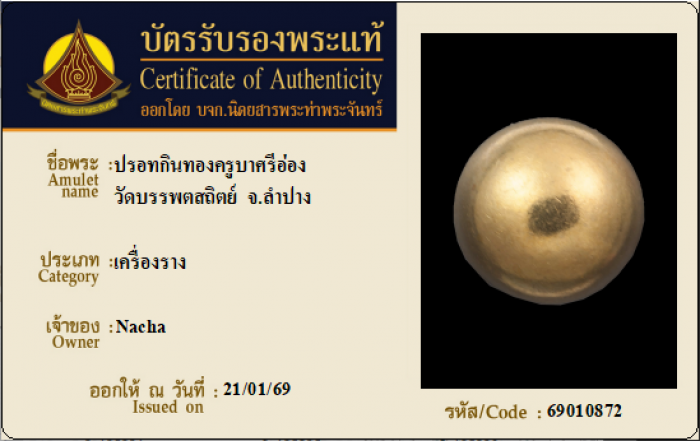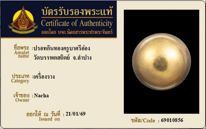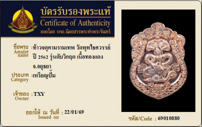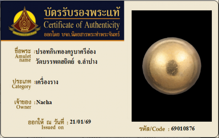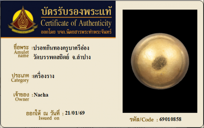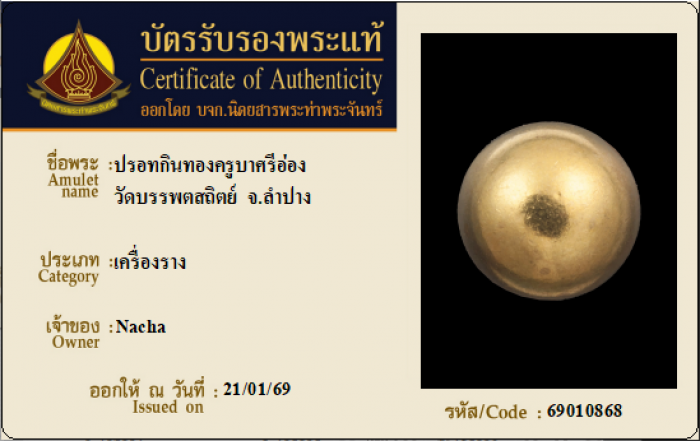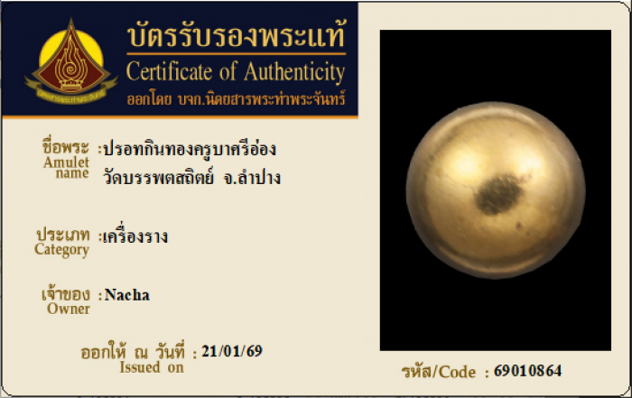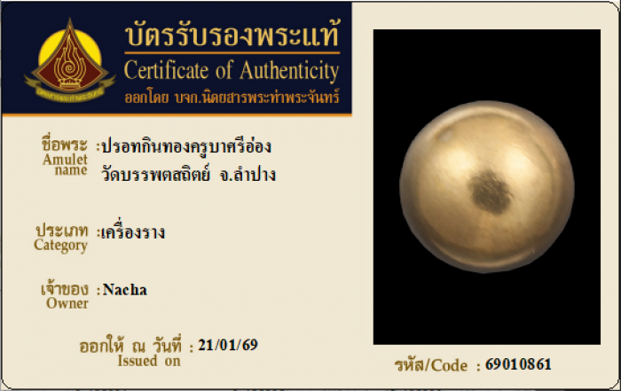 ค้นหาใบการันตีพระแท้