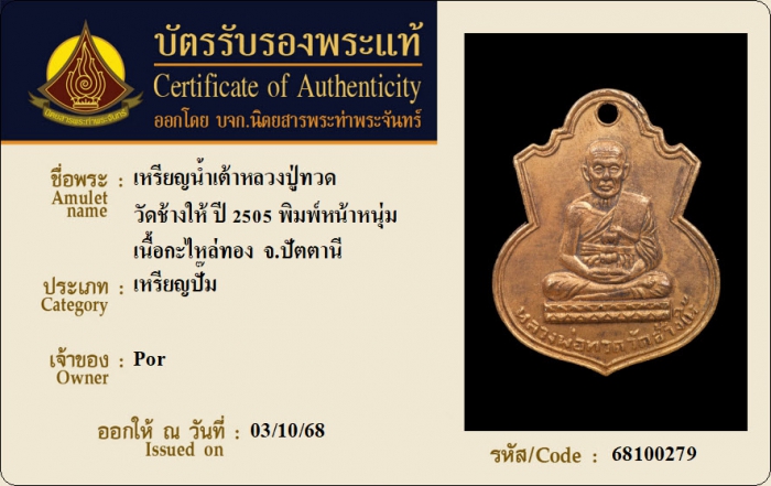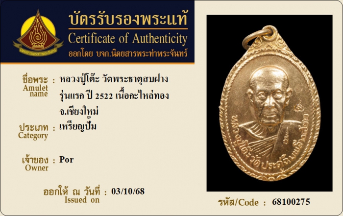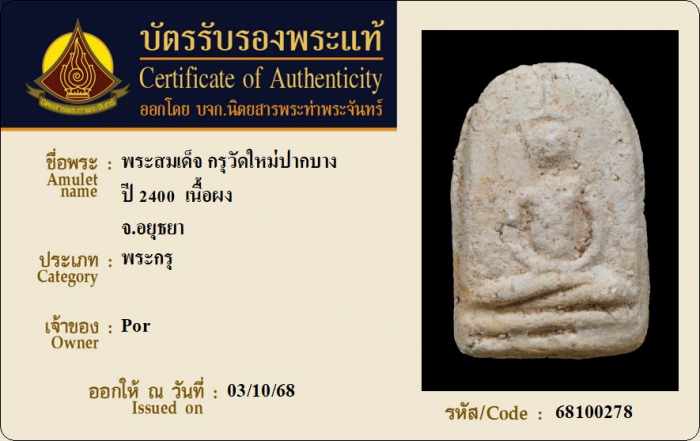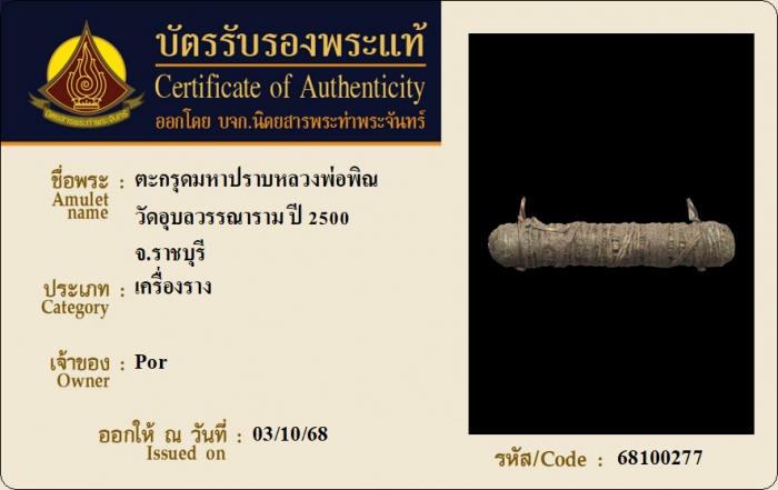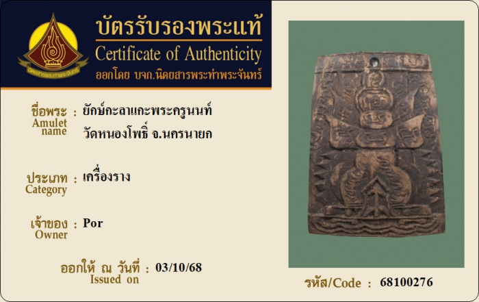 ค้นหาใบการันตีพระแท้