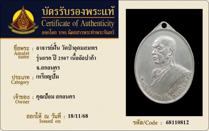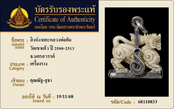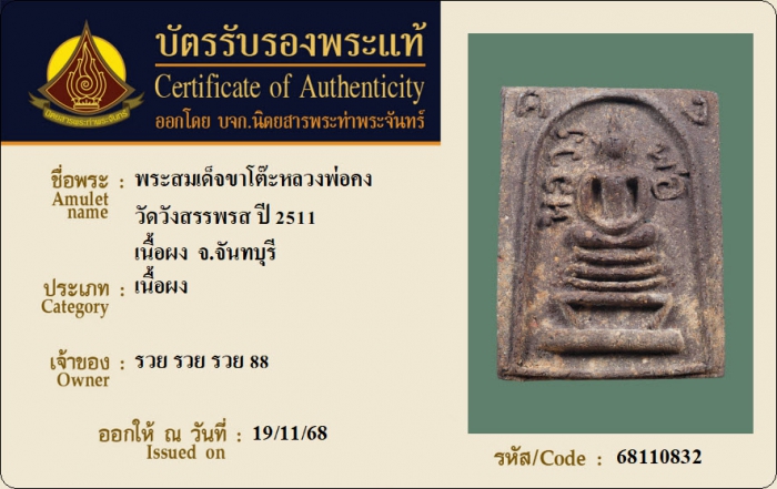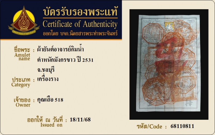 ค้นหาใบการันตีพระแท้