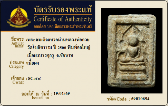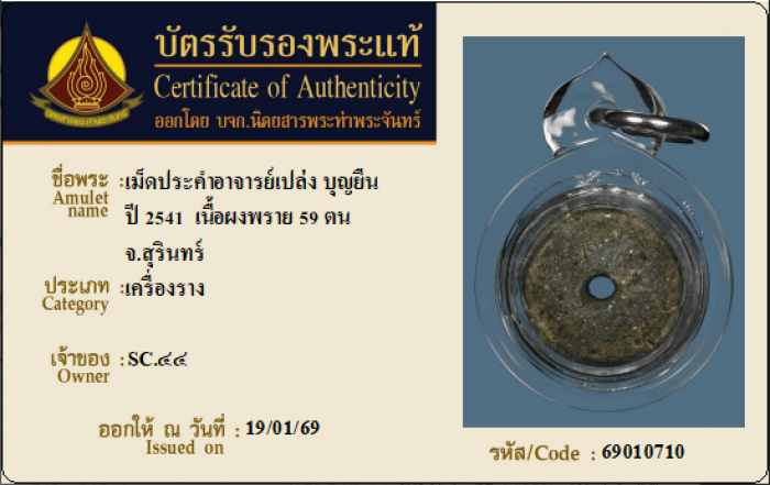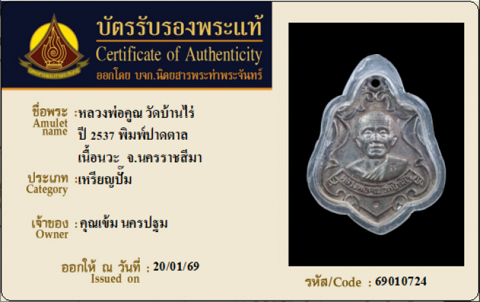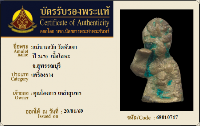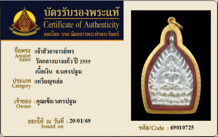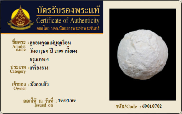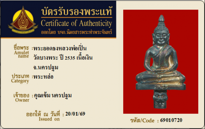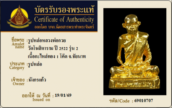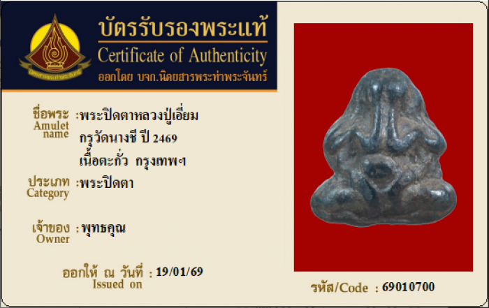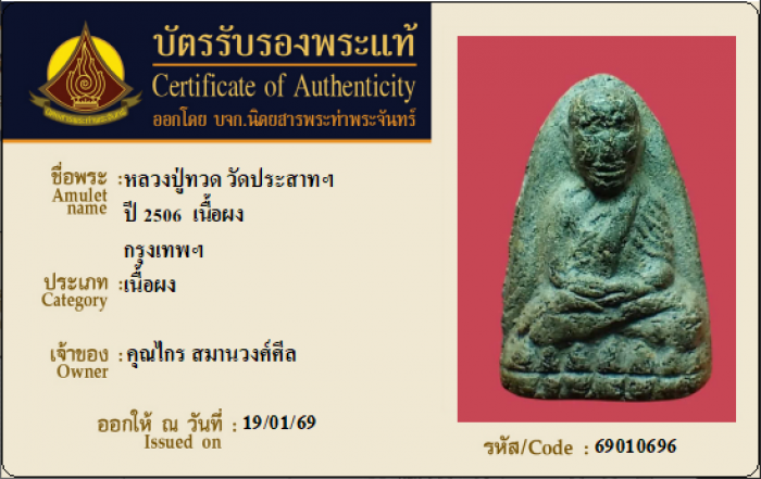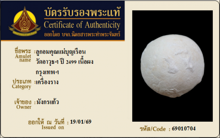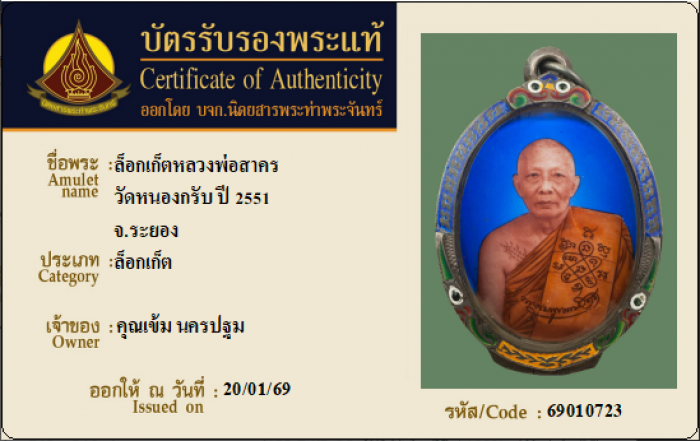 ค้นหาใบการันตีพระแท้