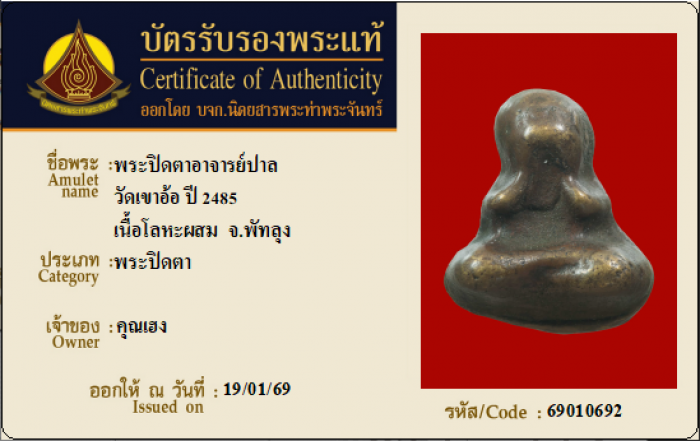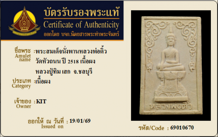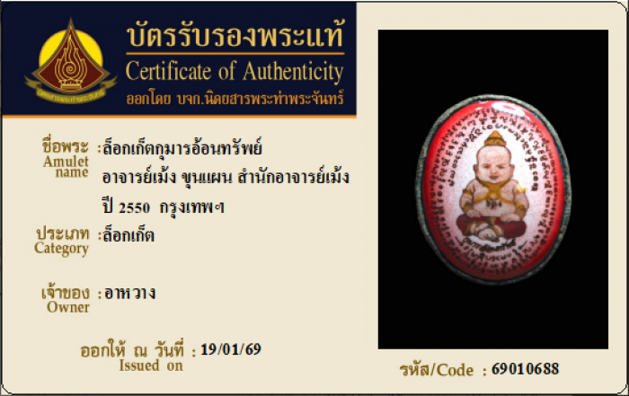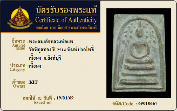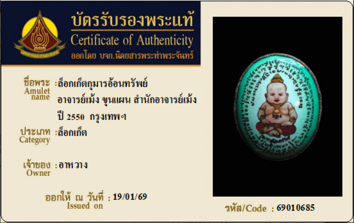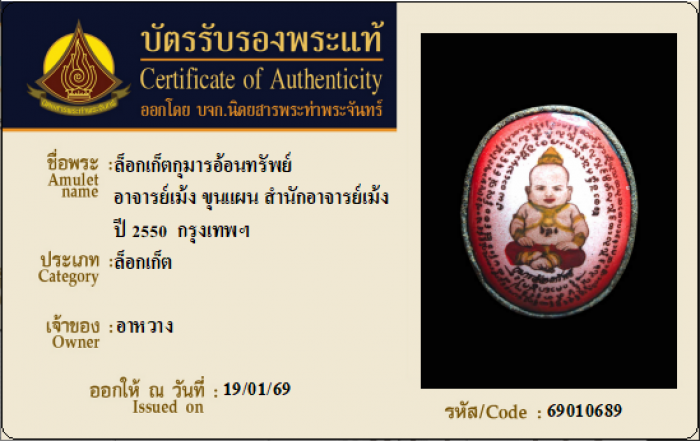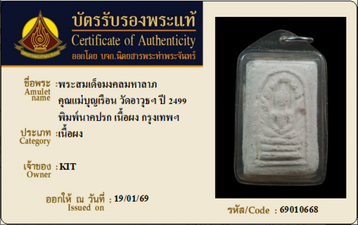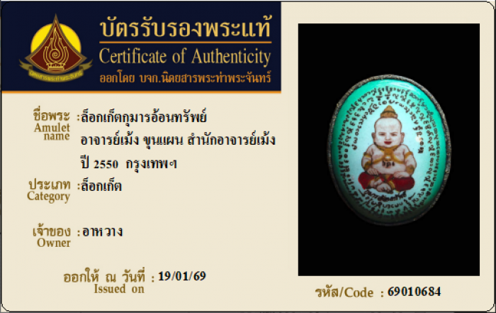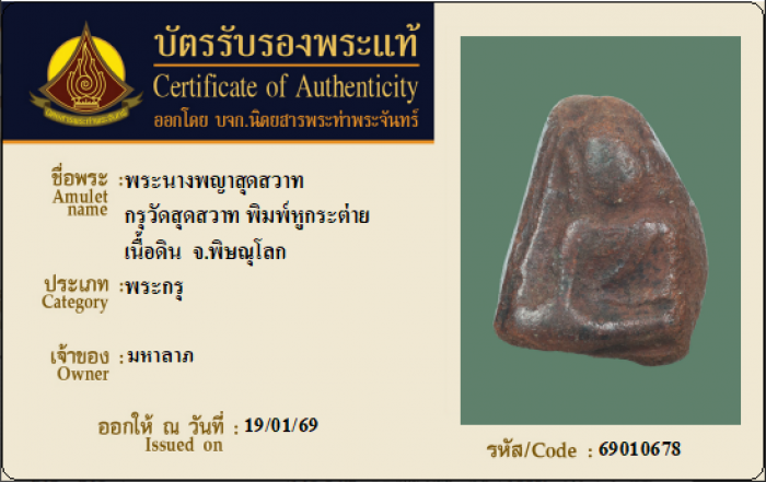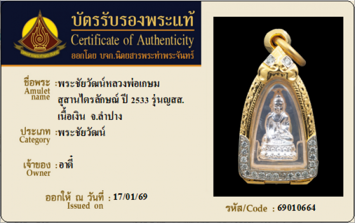ค้นหาใบการันตีพระแท้