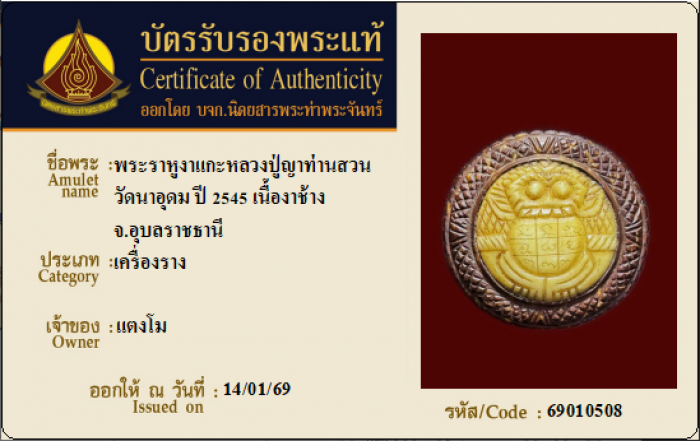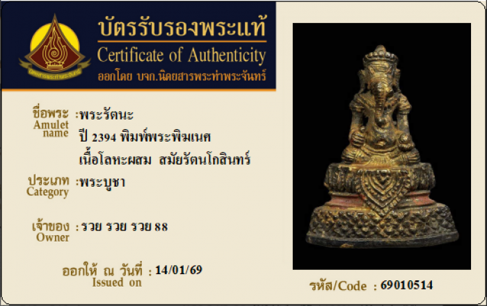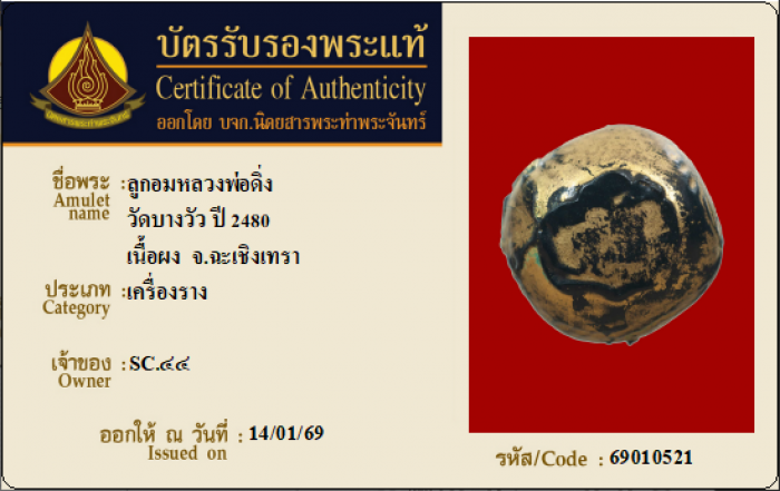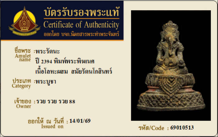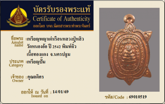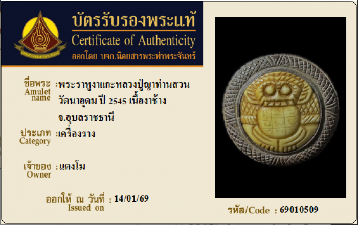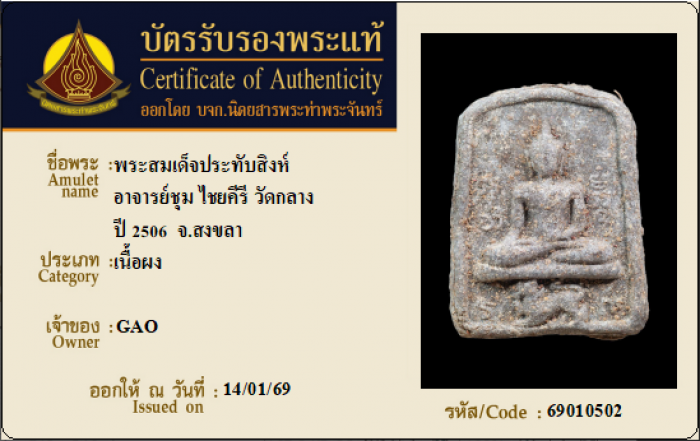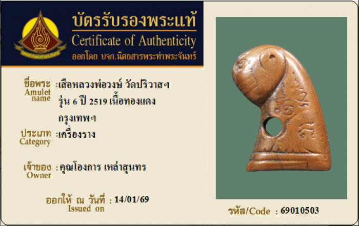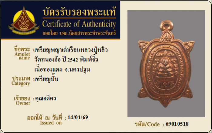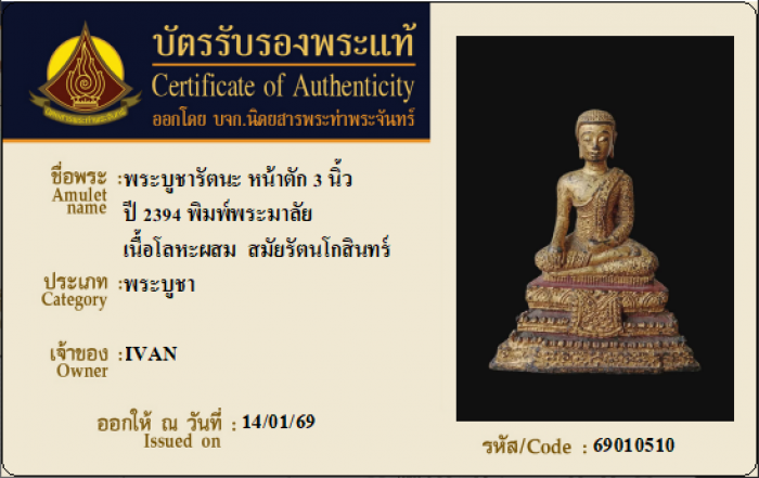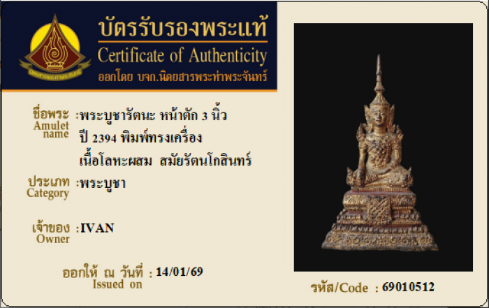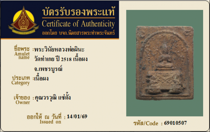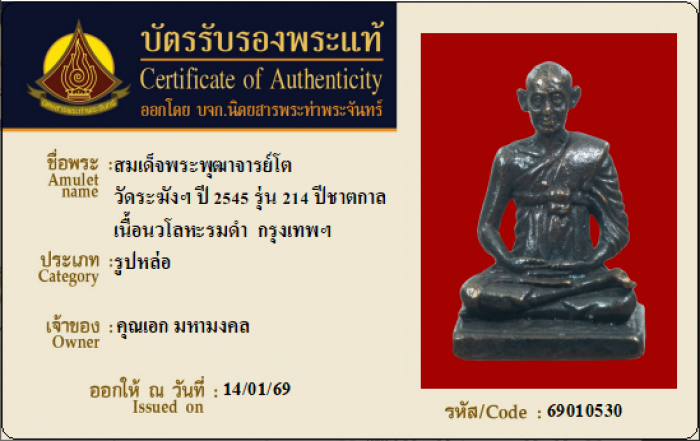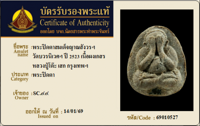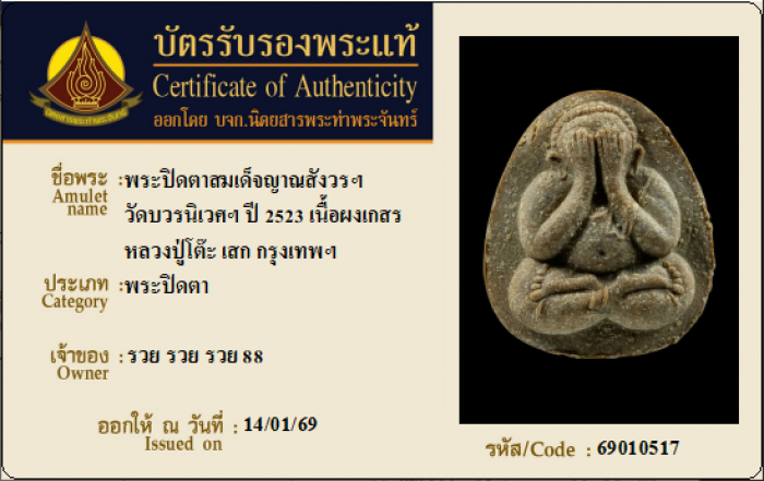 ค้นหาใบการันตีพระแท้