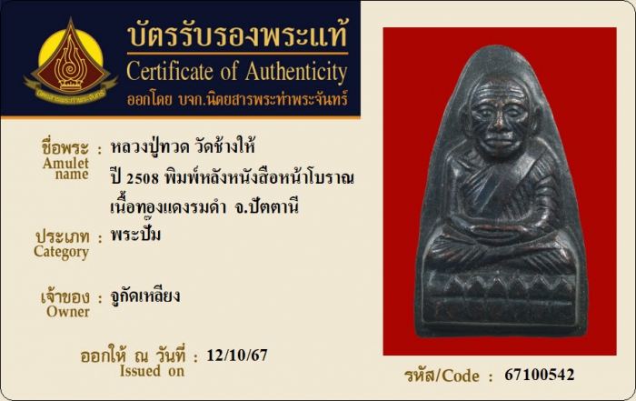 ค้นหาใบการันตีพระแท้