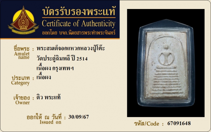 ค้นหาใบการันตีพระแท้