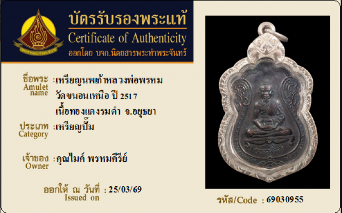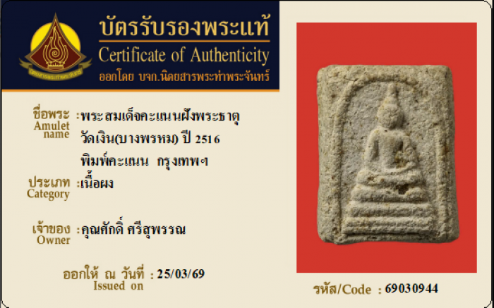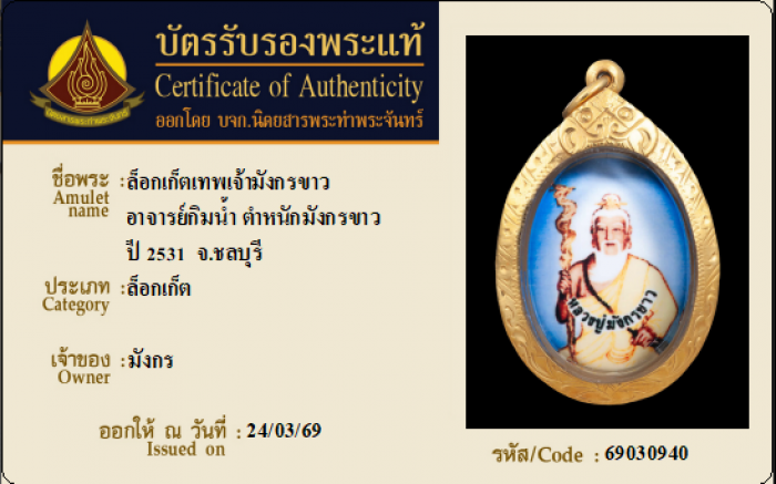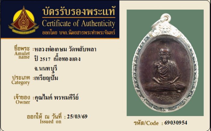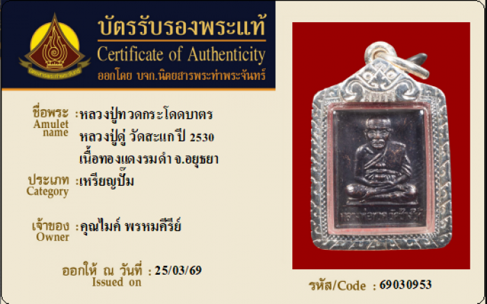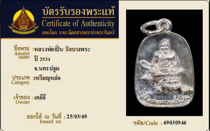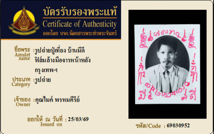 ค้นหาใบการันตีพระแท้
