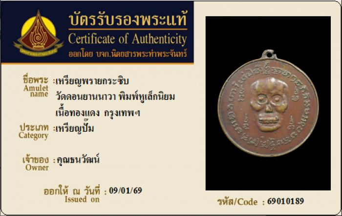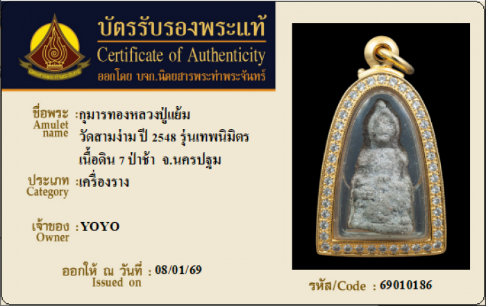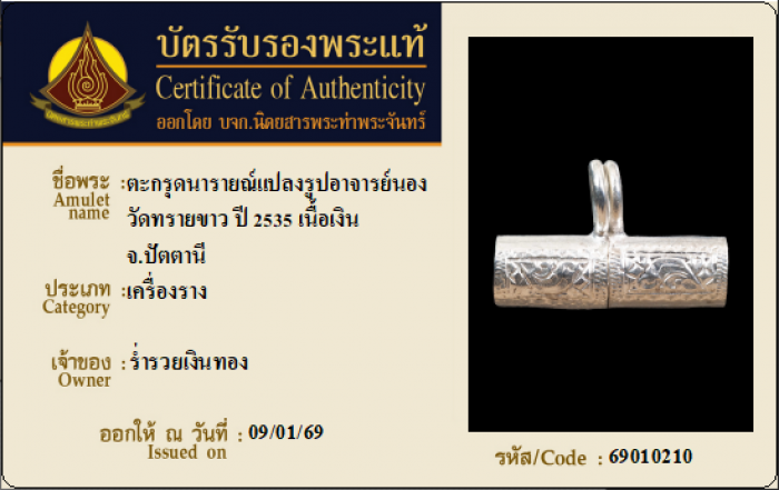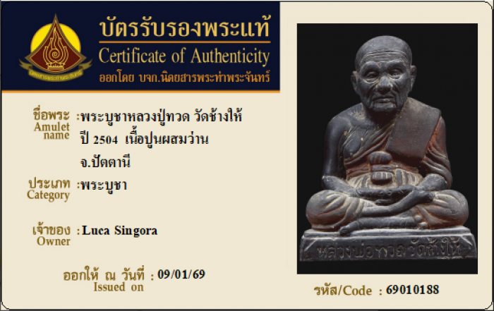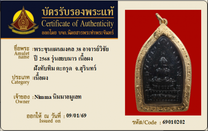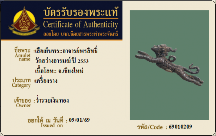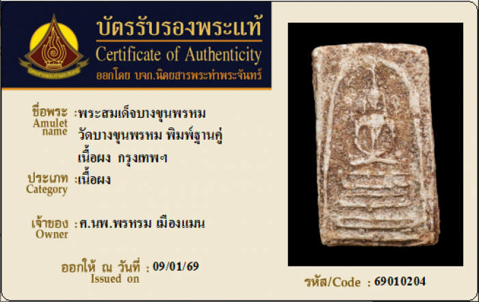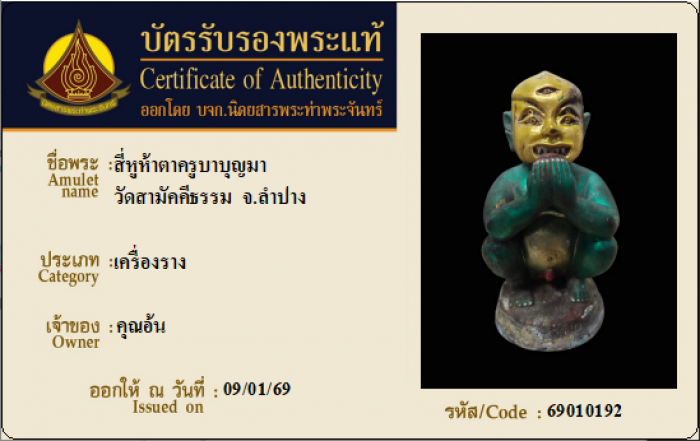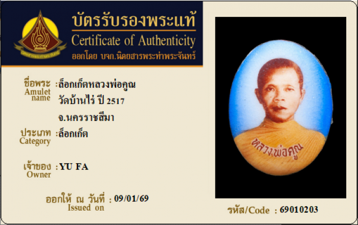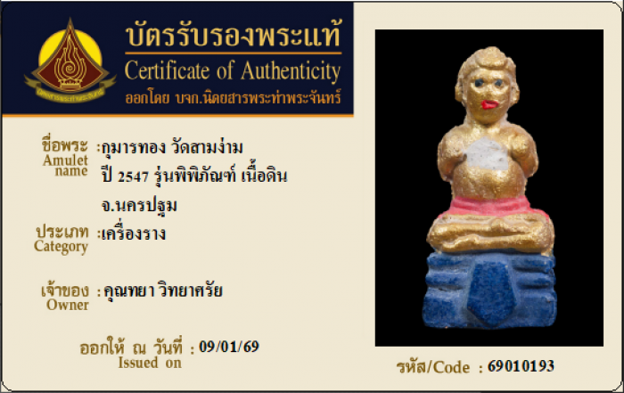 ค้นหาใบการันตีพระแท้