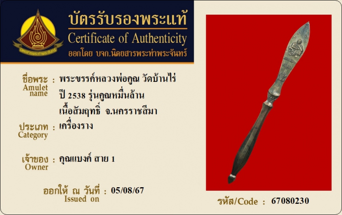 ค้นหาใบการันตีพระแท้