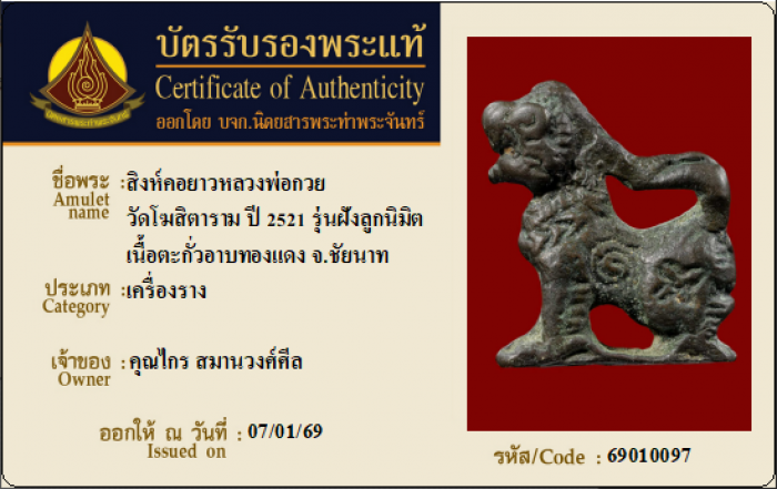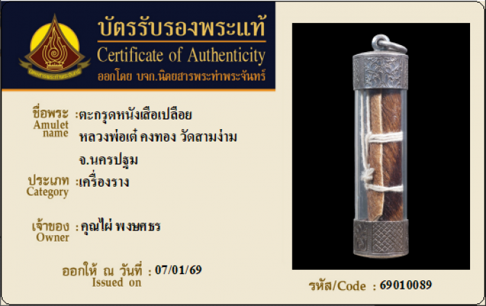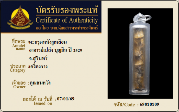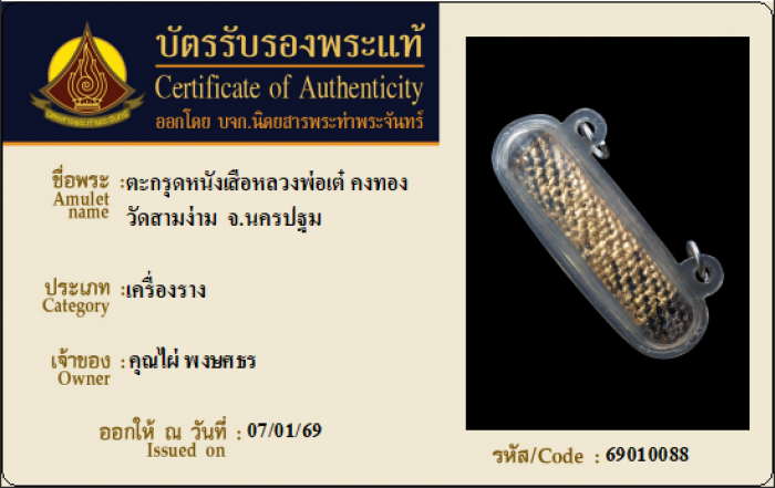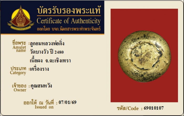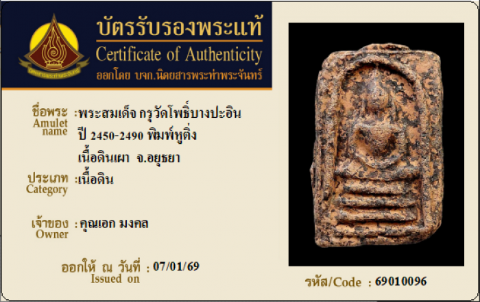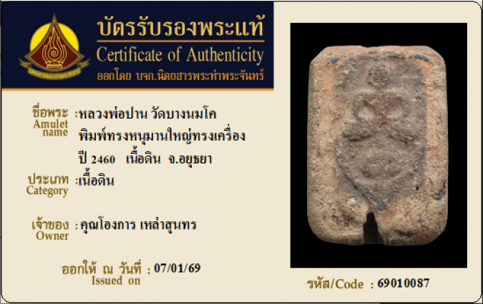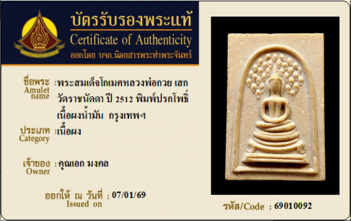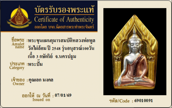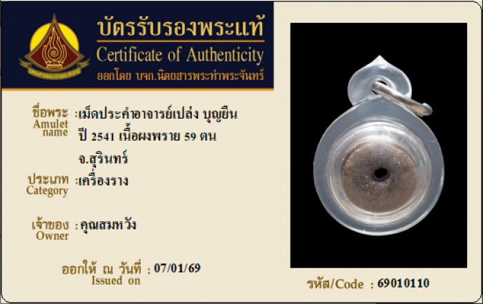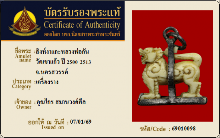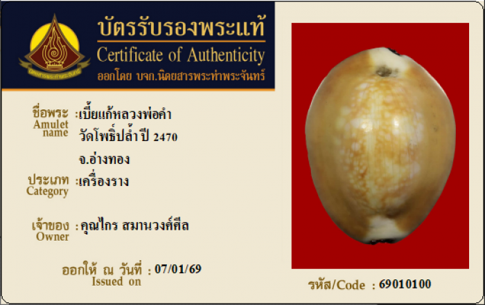 ค้นหาใบการันตีพระแท้