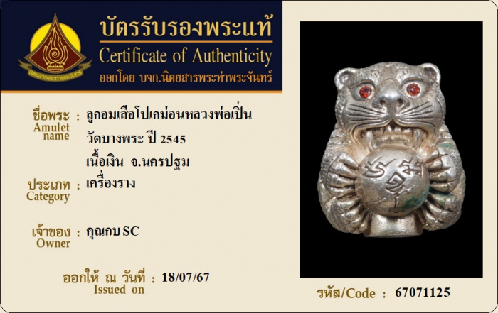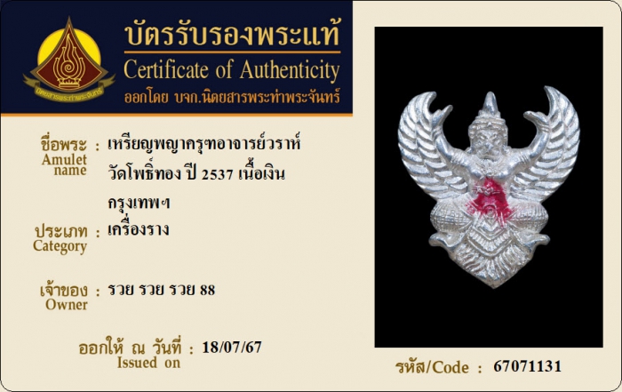 ค้นหาใบการันตีพระแท้