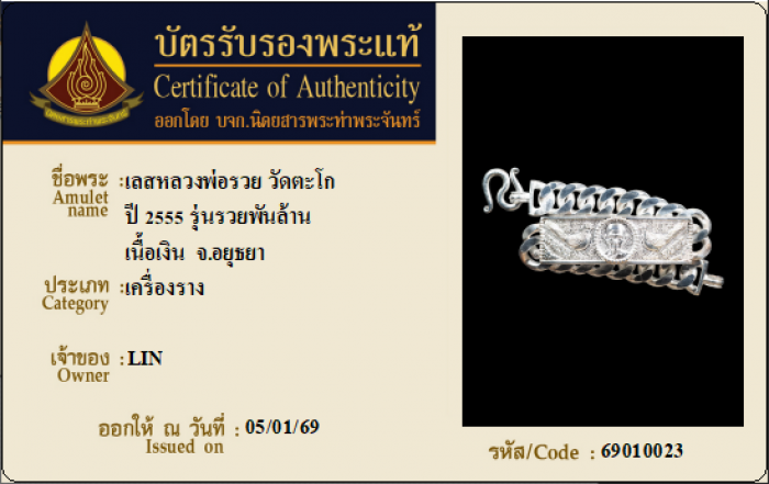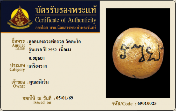 ค้นหาใบการันตีพระแท้