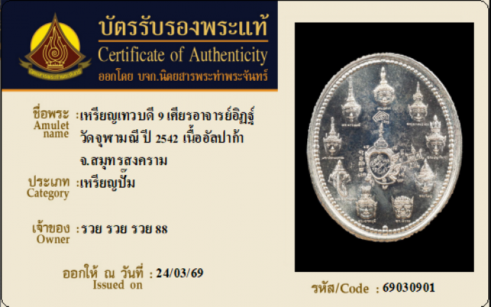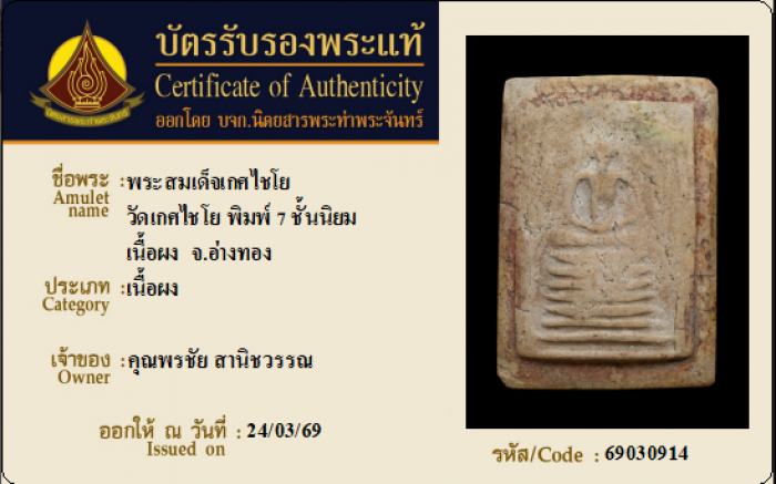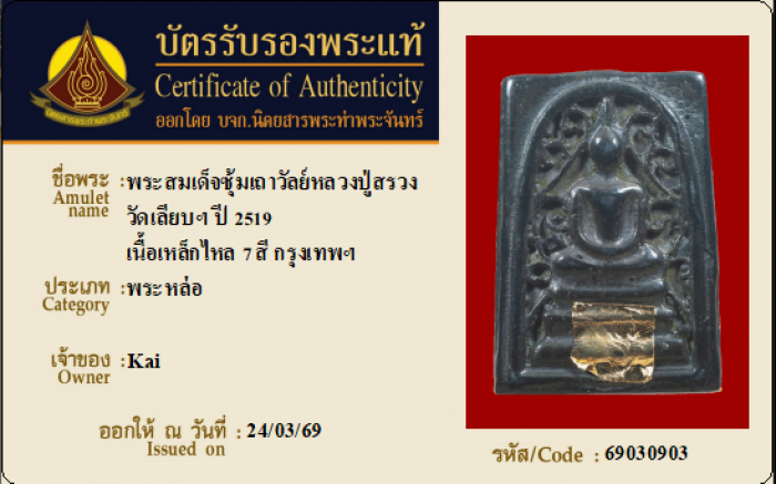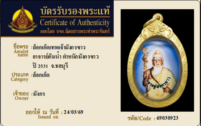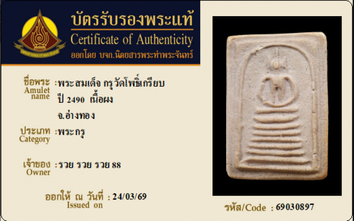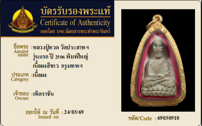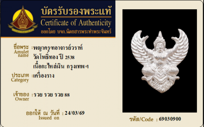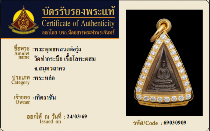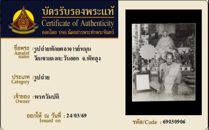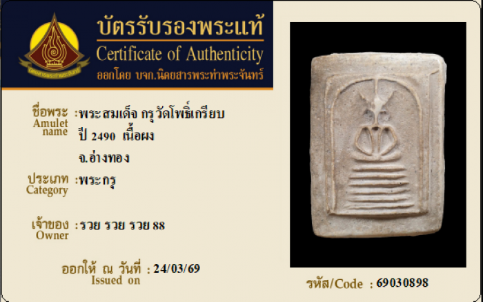 ค้นหาใบการันตีพระแท้