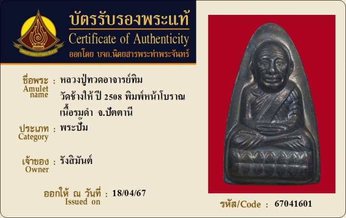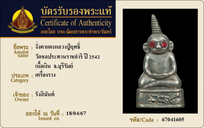 ค้นหาใบการันตีพระแท้