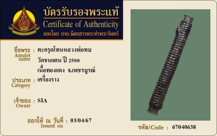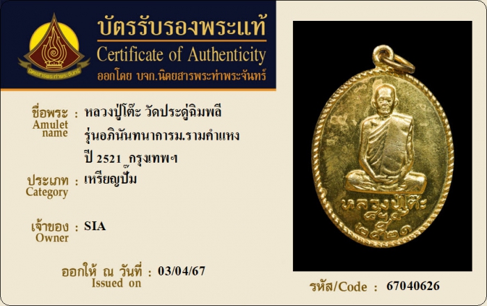 ค้นหาใบการันตีพระแท้