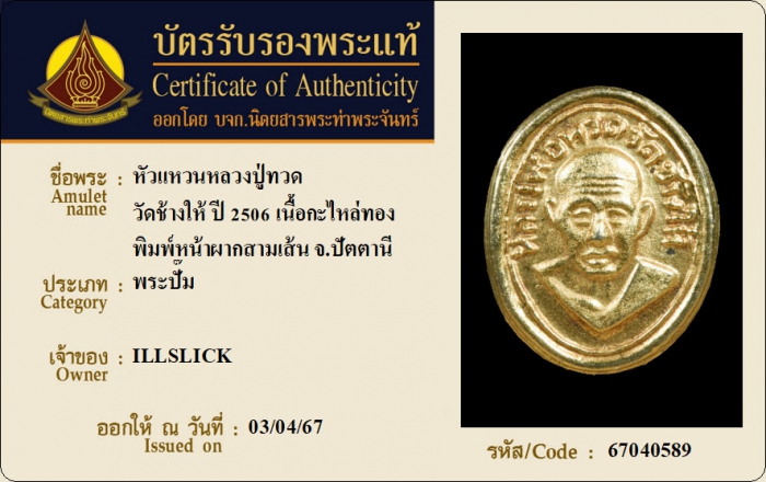 ค้นหาใบการันตีพระแท้