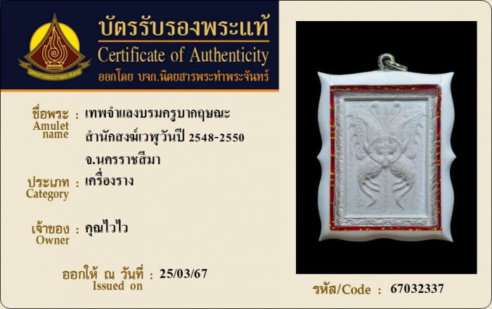 ค้นหาใบการันตีพระแท้