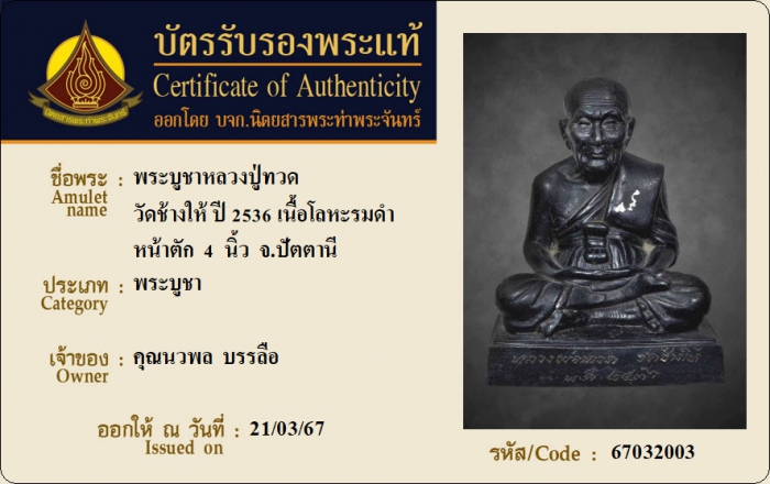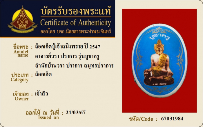 ค้นหาใบการันตีพระแท้