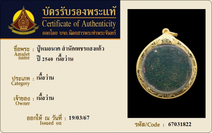 ค้นหาใบการันตีพระแท้