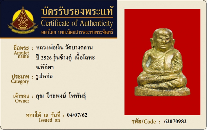 ค้นหาใบการันตีพระแท้
