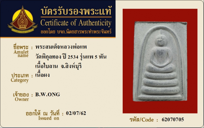 ค้นหาใบการันตีพระแท้